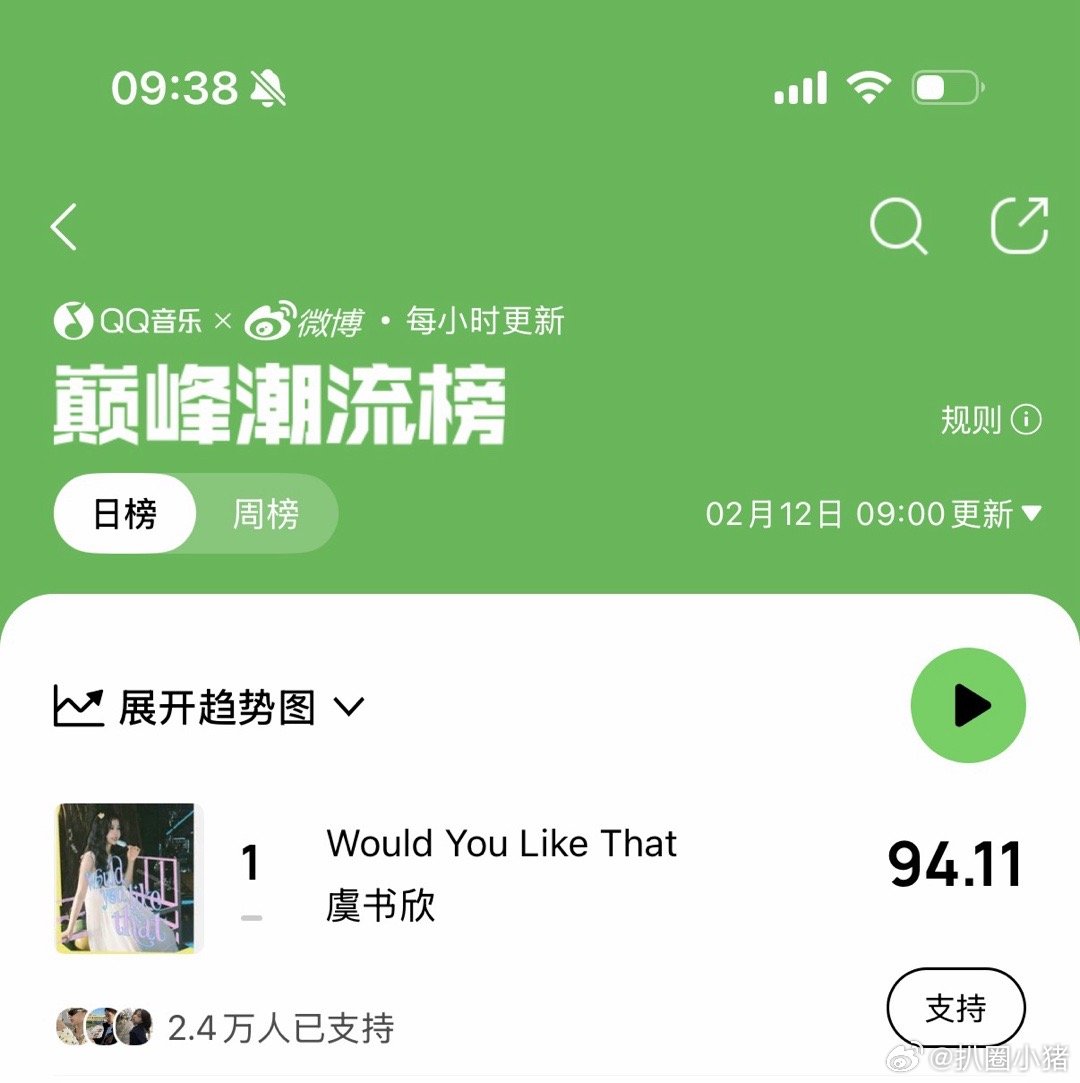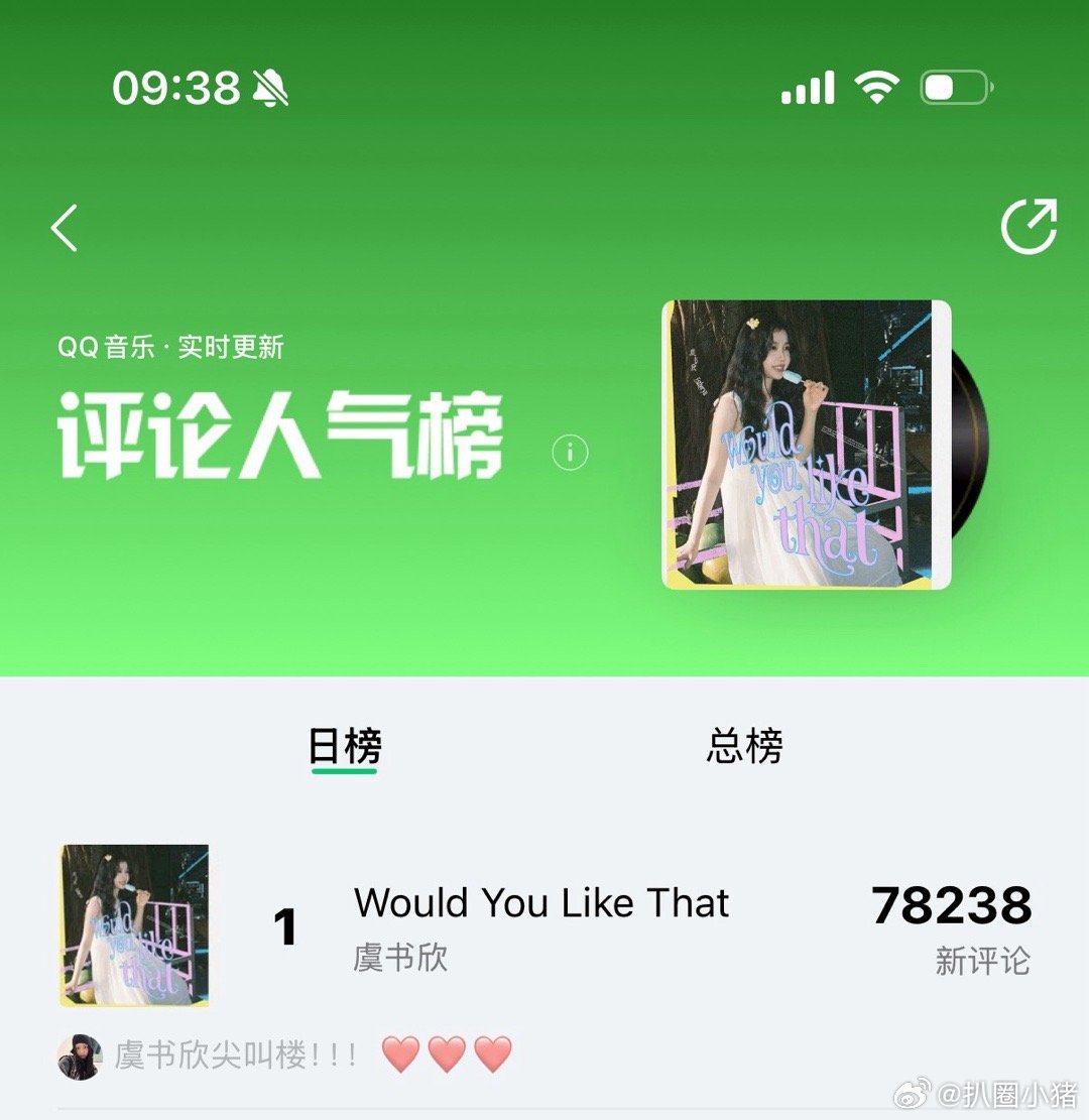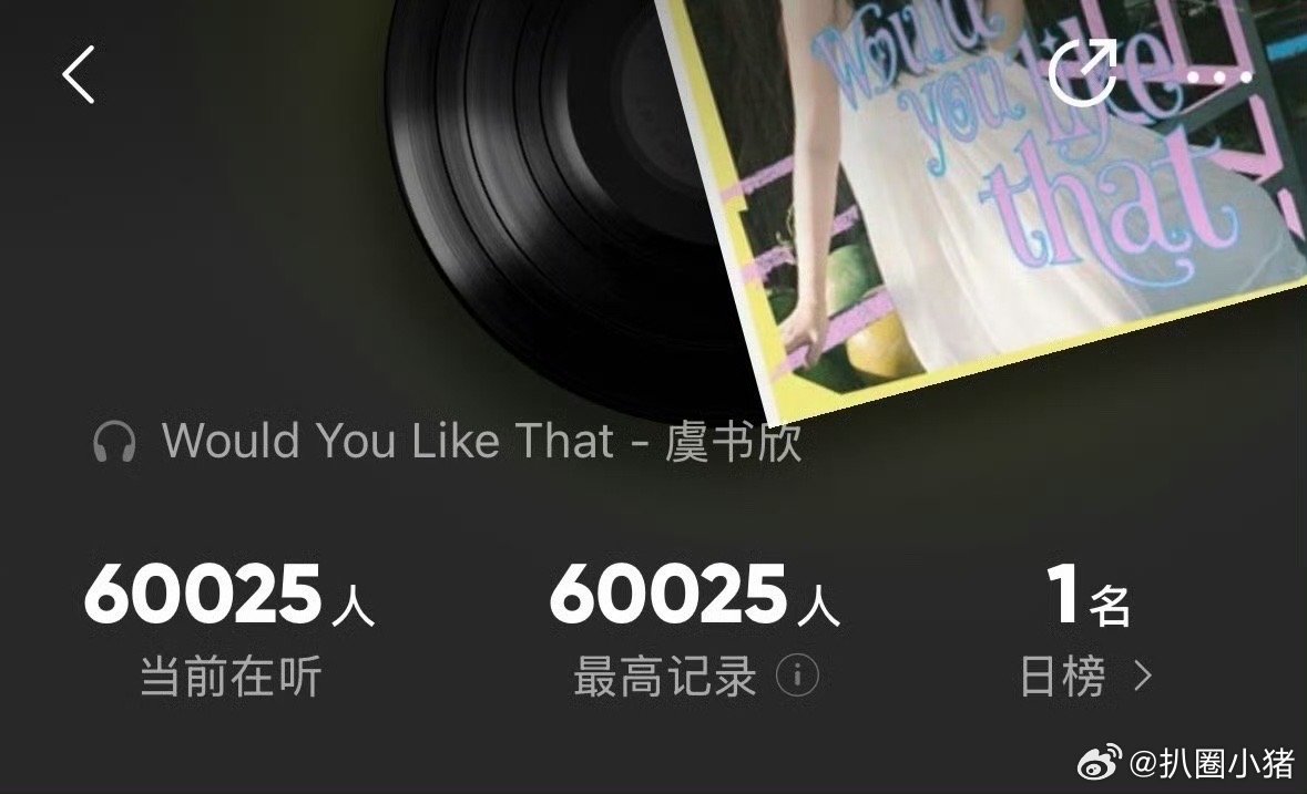 虞书欣新歌《WouldYouLikeThat》在听人数6万➕!各榜单都是第一☝🏻虞书欣新歌