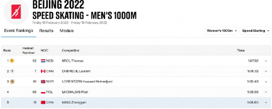 时间拉回到四年前的北京冬奥会,速滑男子1000米比赛,荷兰选手克罗尔在该项目夺冠,夺冠成绩是1分07秒92,也就是说宁忠岩本届冬奥会的成绩放在四年前已经超过当年的冠军成绩。四年前,宁忠岩在该项目获得第五,成绩是1分08秒60。