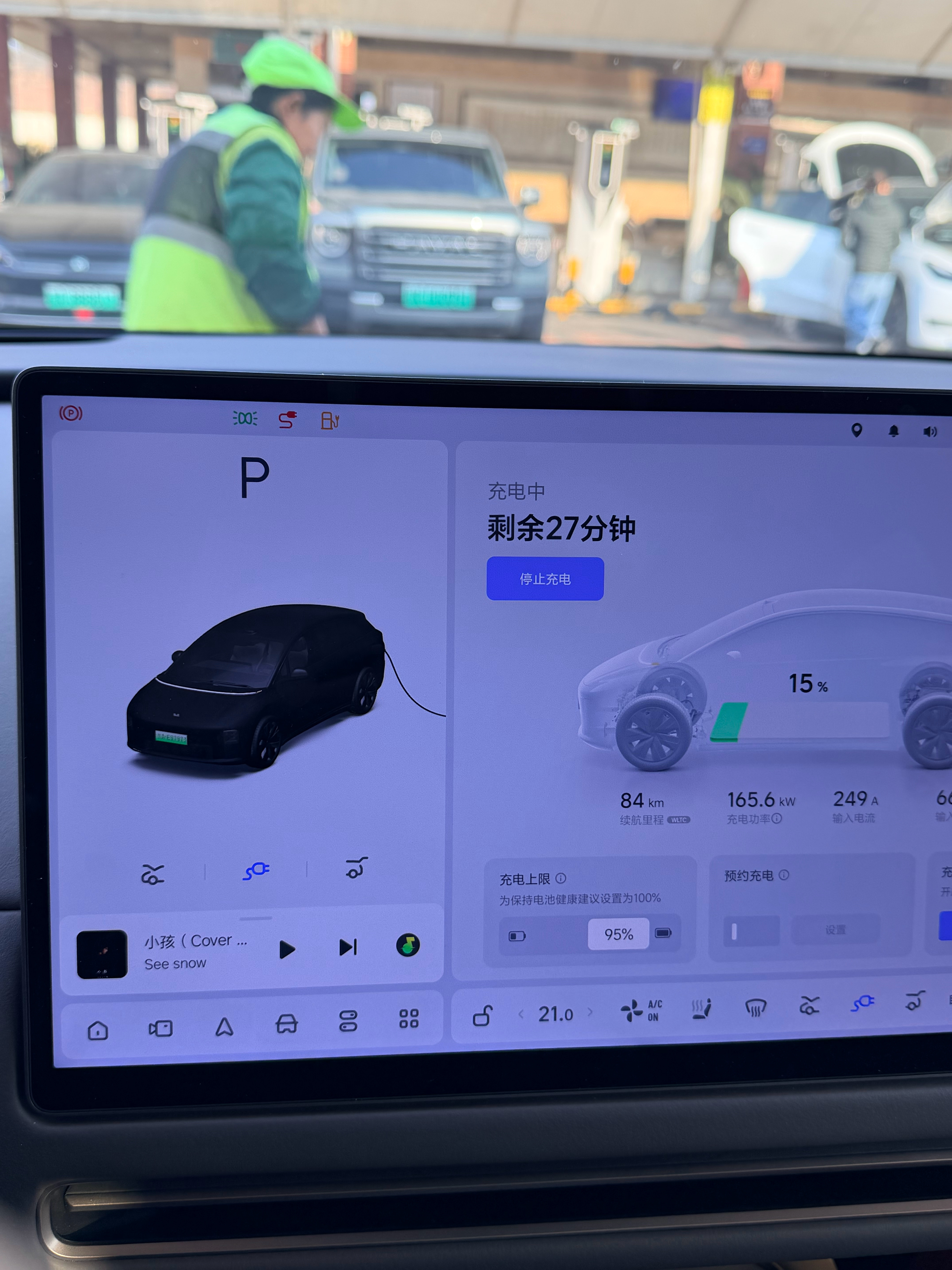 四川境内的充电桩不能品牌独占,需要面向所有社会车辆开放。这5C 就被旁边一个大兄弟给充上了,问题是它还很慢,也没人在,商量不了。只能到旁边2C 了~时间增加了10几分钟~这种何解?因为现在能看到充电桩实况,能不能设置一个理想纯电拥有优先预约的设置?理想i6 广元·剑门关服务区(京昆高速北京方向)