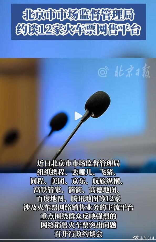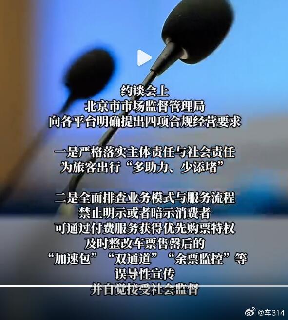 误导性宣传那可是太多了,每年买车票都有各种花里胡哨的副驾功能,什么“加速包”,什么“余票监控”,很多人反映钱是花了,但基本不好使,很像智商税。这就是玩弄互联网思维的结果,必须要整治一下了。包括住宿类APP“杀熟”的问题也是一样,用苹果手机预订就贵,用安卓手机预订就便宜,住的多的反而更贵了。AI大数据技术的发展,本来应该提升使用体验,结果被这些开发者用来敛财,真是太特色了。12家第三方火车票网售平台被约谈北京市监局约谈12家火车票网售平台
