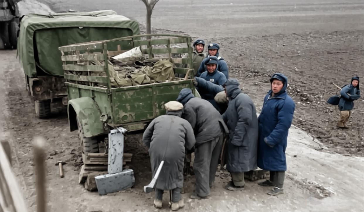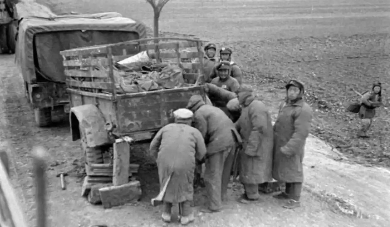 这张照片由美国《生活》杂志记者马克·考夫曼于1947年拍摄,它记录的并非一场战斗,而是一场发生在自己人之间的、因饥饿而起的冲突。 1947年,解放战争进入第二个年头,国民党军队在战场上节节败退,其后勤体系的崩溃也日益显现。照片中,一群从前线撤下的国军士兵,在又冷又饿的状态下,遇到了一支运粮车队。他们希望能分到一些粮食,却遭到了护粮士兵的拒绝,最终演变成了一场群殴。 拍摄这张照片的美国记者,原本是被国民党当局请来报道其“装备精良、训练有素”的,却意外捕捉到了这出充满讽刺意味的“特别演出”。