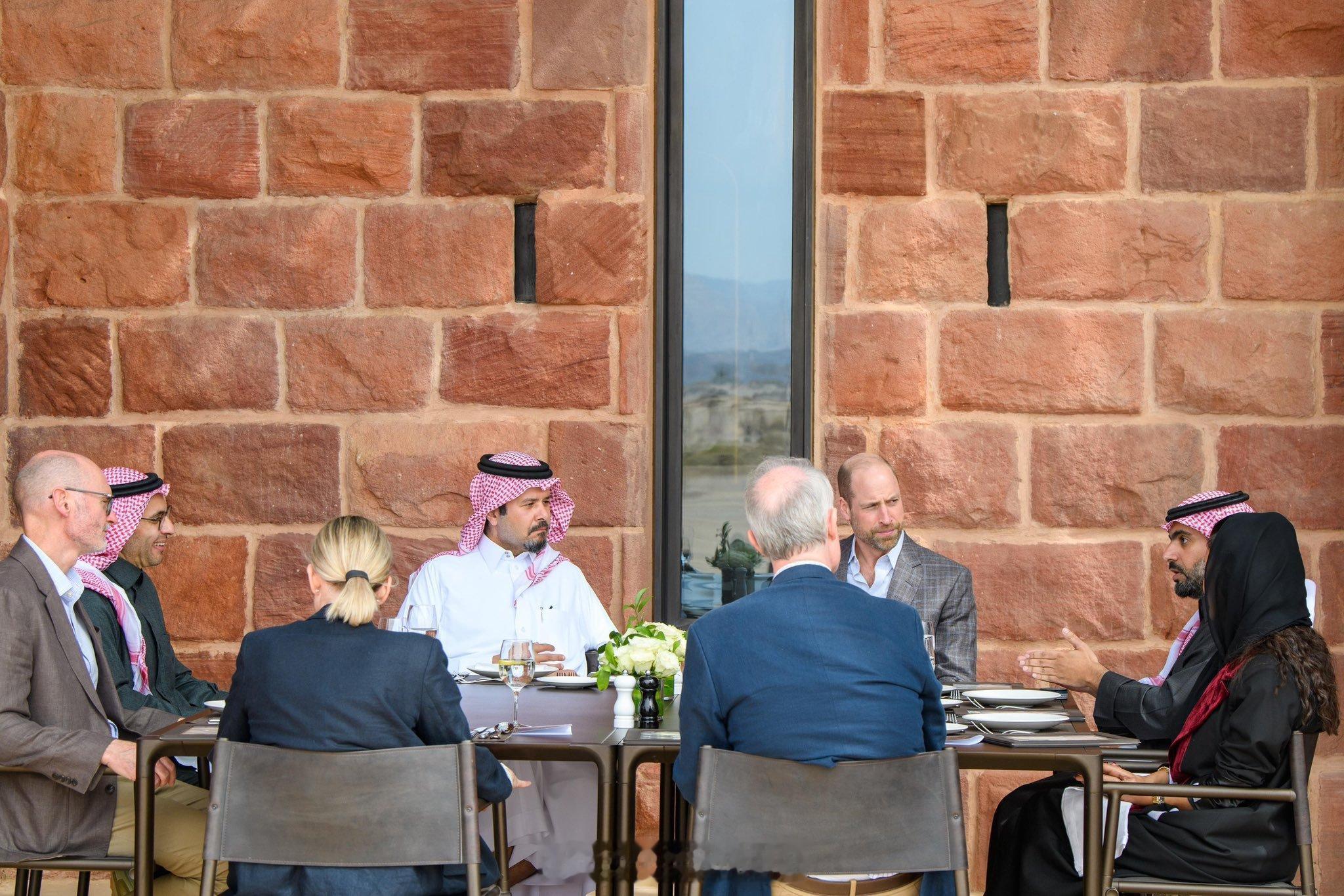 2026年2月11日,在英国驻沙特阿拉伯大使Stephen Hitchen的陪同下,威廉王储在沙特阿拉伯埃尔奥拉黑格拉的Chedi Hegra酒店与沙特阿拉伯麦地那省省长Salman bin Sultan bin Abdulaziz Al Saud和沙特阿拉伯文化部长Badr bin Abdullah bin Farhan举行会议🇸🇦