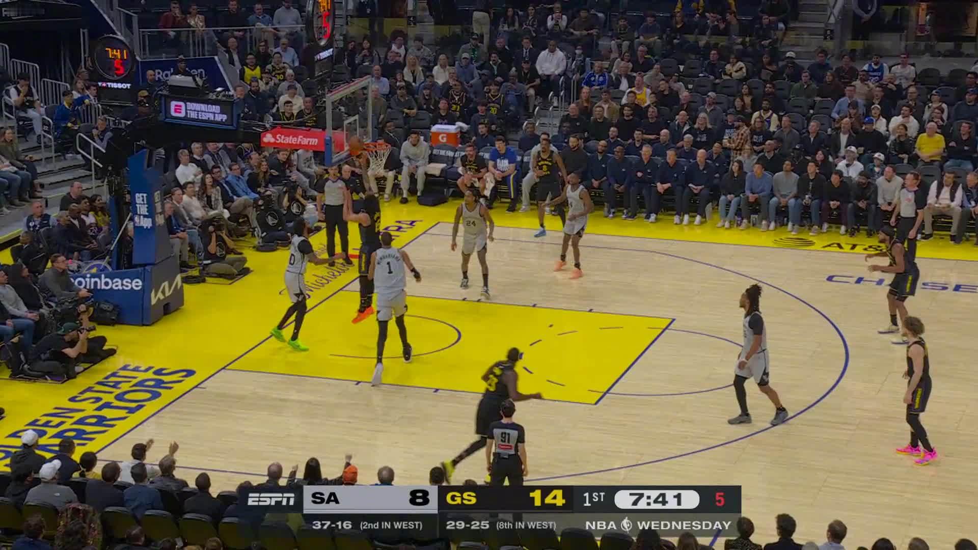 桑托斯两分入账✌️勇士16:8马刺。马刺vs勇士