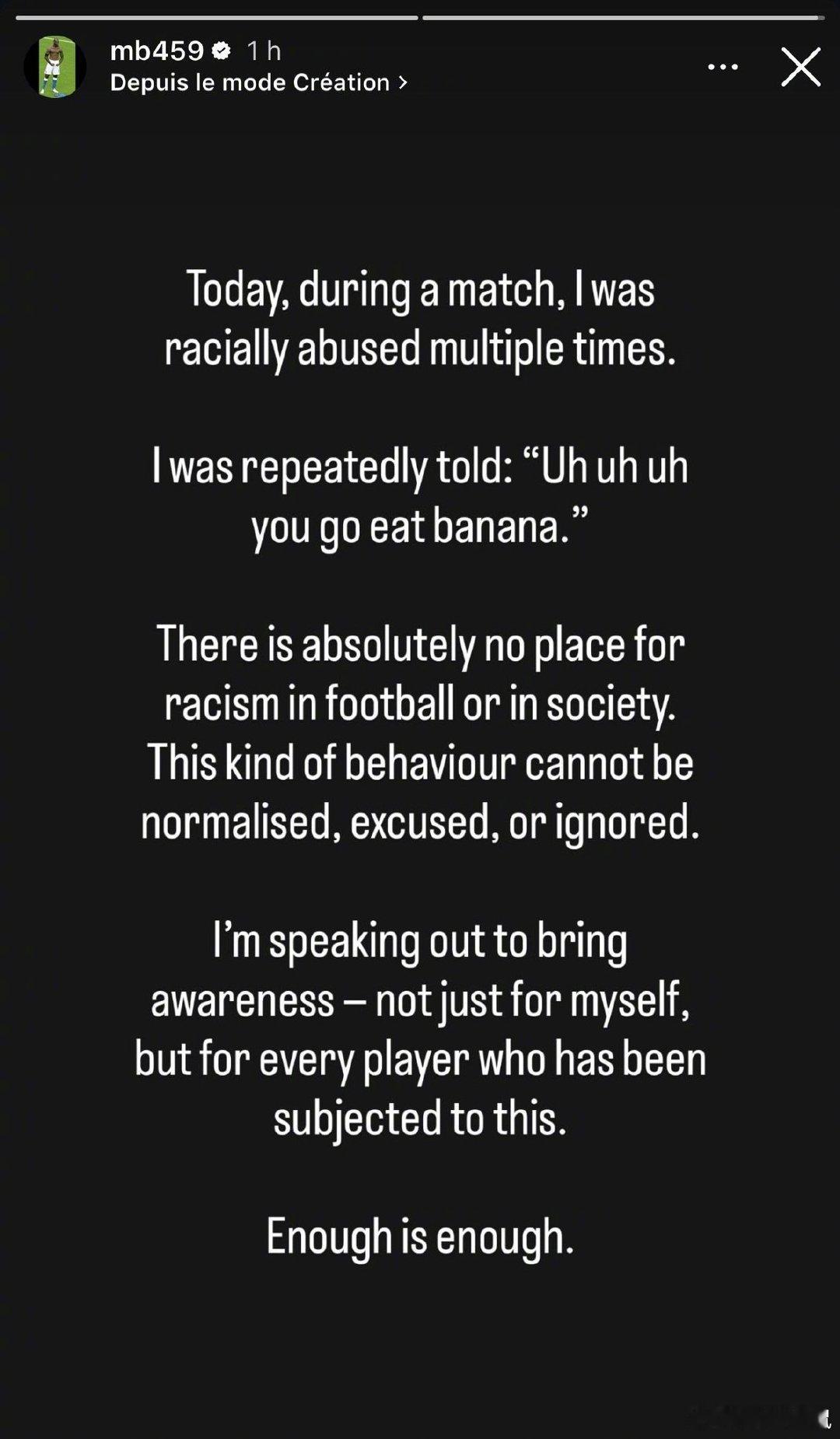 【控诉】35岁的巴洛特利不久前加盟阿联酋二级联赛的迪拜协作,最近他在比赛中遭遇了种族歧视,不能忍,他发文控诉:“有人多次对我说:呜呜呜,去吃香蕉吧。在足球或社会中,绝对没有种族歧视的容身之地,这种行为不能被正常化,合理化或忽视。我想公开谈论此事,以提高公众的意识,不仅仅是为了我自己,也为了每一个遭受过这种对待的球员,够了。”