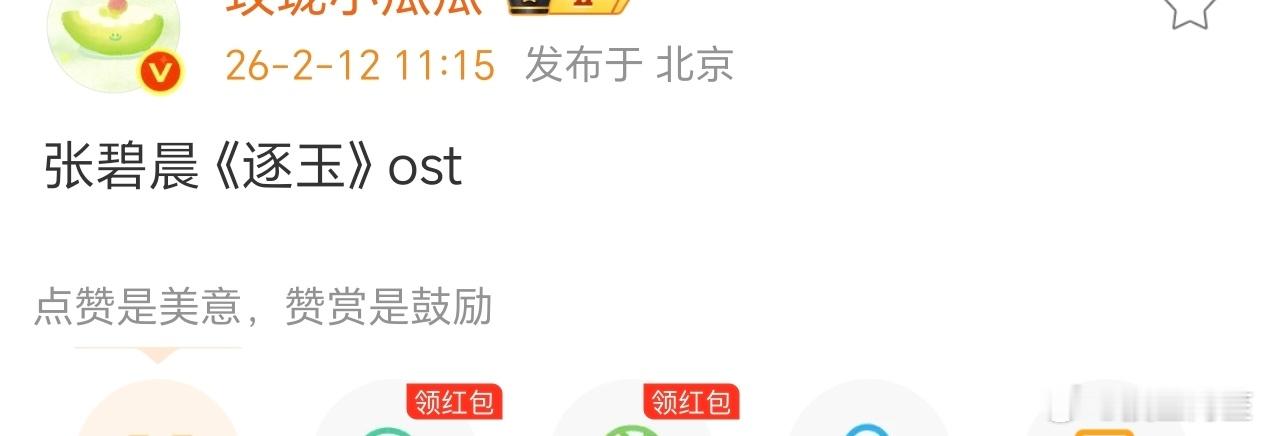 继林俊杰后,张碧晨也来给《逐玉》唱ost了!这部剧真的是投资很大,制作团队非常用心啊!