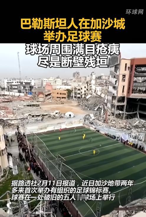 谁也没想到,在加沙城的一片废墟里,居然有人办起了足球赛,2026年2月这里迎来了加沙两年多来第一场有模有样的足球锦标赛,24支当地球队的球员,在一块清理了整整三周才勉强能用的五人制球场上,重新踢起了心爱的足球。 放眼望去,球场四周全是被战火啃过的楼房,有的只剩半拉架子,钢筋裸露,有的墙体塌成了碎块,玻璃渣子遍地都是。 可就在这片满目疮痍的中间,球员们穿着队服,在草地上奔跑、传球、射门,脸上的专注劲儿,跟在世界杯赛场没两样。 首场比赛,贾巴利亚青年队对萨达卡队,另一场是贝特哈农队对舒贾亚队,两场都踢成了平局。 赛场没有炫目的灯光,没有专业的看台,只有围观的老百姓挤在破墙边上呐喊,可那股子劲儿,比任何一场职业联赛都动人。 有个球员说得特别实在:“不管天塌成啥样,日子总得往下过。” 这话听着朴素,却藏着加沙人最硬的骨头,他们不是忘了那些伤痛,而是选择用最日常的方式对抗绝望,足球不是逃避,是在告诉全世界,我们还在,我们还能跑,我们还能笑。 这场比赛比任何冠军奖杯都金贵,它不是体育新闻里的一条简讯,而是一群人在废墟上写下的“活着宣言”。 当皮球在草地上滚起来,当呐喊声穿透断壁残垣,加沙人用行动证明,再深的伤口,也挡不住对生活的渴望,再重的苦难也压不垮想要站起来的人。 这场球,踢的不是输赢,是希望,跑的不是步子,是对明天的执念,它提醒我们,就算世界碎成了渣,只要还有人愿意站起来,生活就永远有重新拼起来的可能。