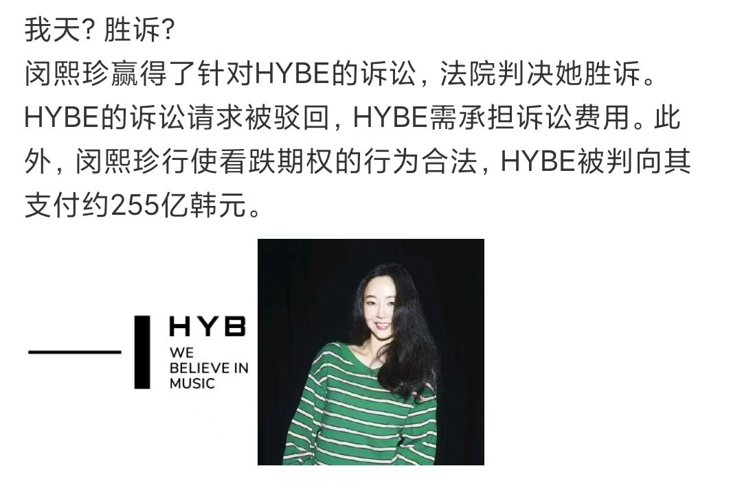 闵熙珍获赔1.2亿元hybe要赔闵熙珍1.2亿元hybe要赔闵熙珍1.2亿元 我