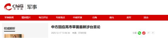 华尔街日报今天发文说:“中国因高市早苗涉台言论而实施的报复非但未能削弱其地位,反