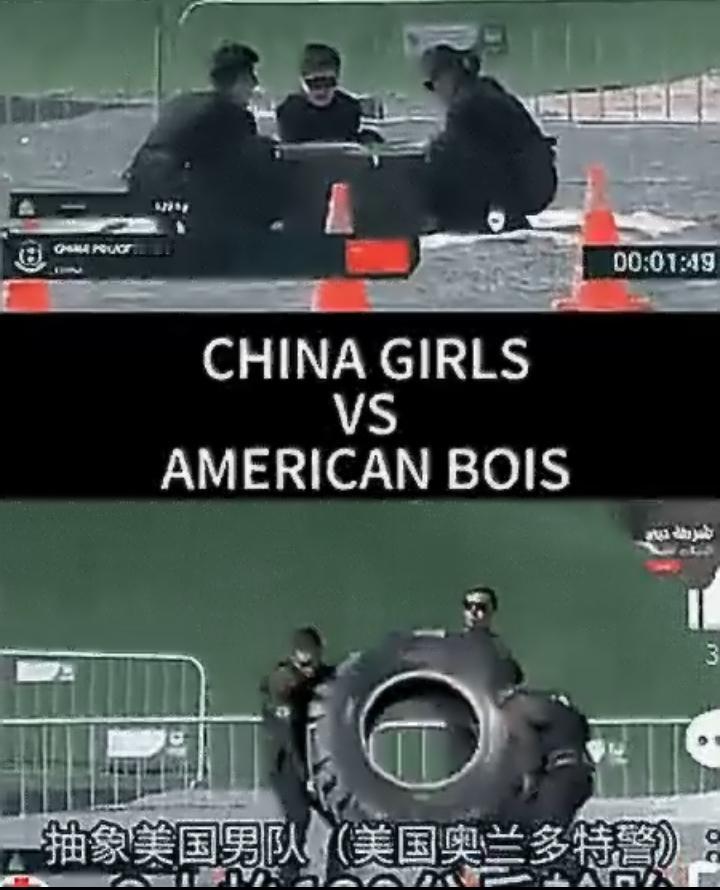 真的太解气了! 美防长海格塞斯前几天还在马里兰州,亲自带着3068名美军学员做俯卧撑,大秀美军体能强悍,高调展示所谓“美式矫健”。 结果脸打得猝不及防。 2月8日迪拜,第七届阿联酋特警挑战赛,120公斤轮胎负重跑项目上演名场面: 美国派出三名男特警,抬轮胎时摇摇晃晃、重心不稳,差点直接被轮胎压趴,起步踉踉跄跄,全程狼狈不堪。 再看咱们中国三名女特警,一声齐喝、同步发力,120公斤轮胎稳稳抬起,步伐干脆、身姿飒爽,小跑向前一气呵成。 同样重量、同样人数、同样规则, 美国是男特警,中国是女特警, 结果实力被直接碾压,差距一目了然。 这边海格塞斯还在卖力造势, 那边美国特警在国际赛场直接“翻车”, 这脸打得又快又响。 不是靠口号,不是靠作秀, 是真刀真枪的硬实力。 中国女警,又飒又刚,为国争光!