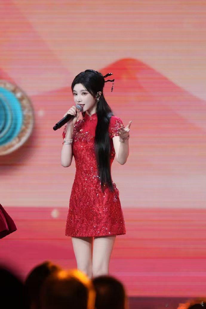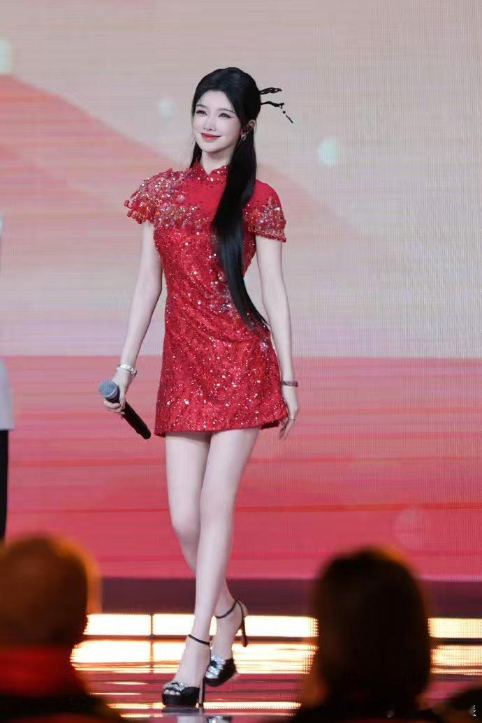 戴燕妮红色闪钻旗袍 哇塞!戴燕妮的红色闪钻旗袍太绝啦,正红色干净利落,满屏闪钻在灯光下闪烁,东方韵味直接拉满!