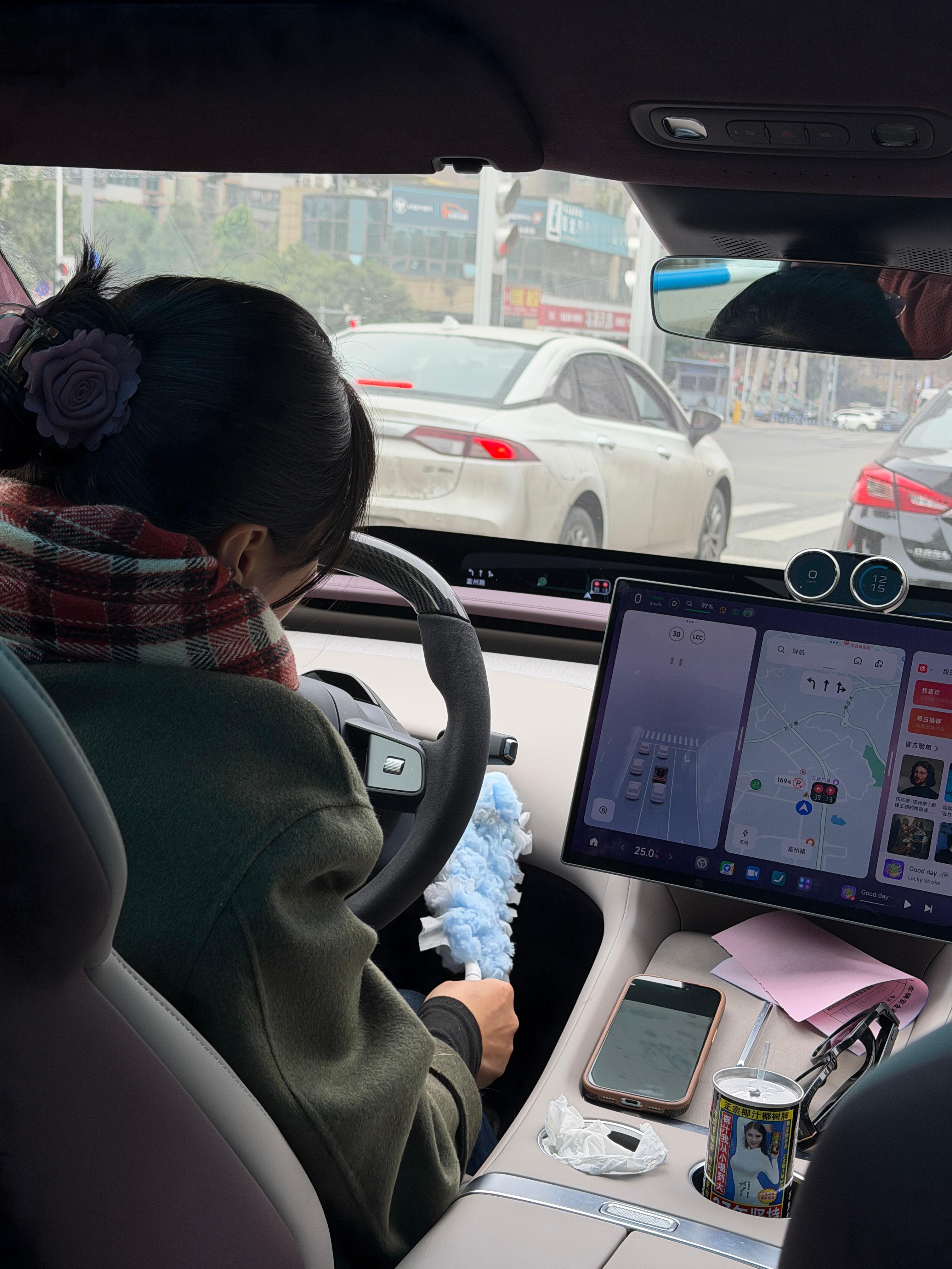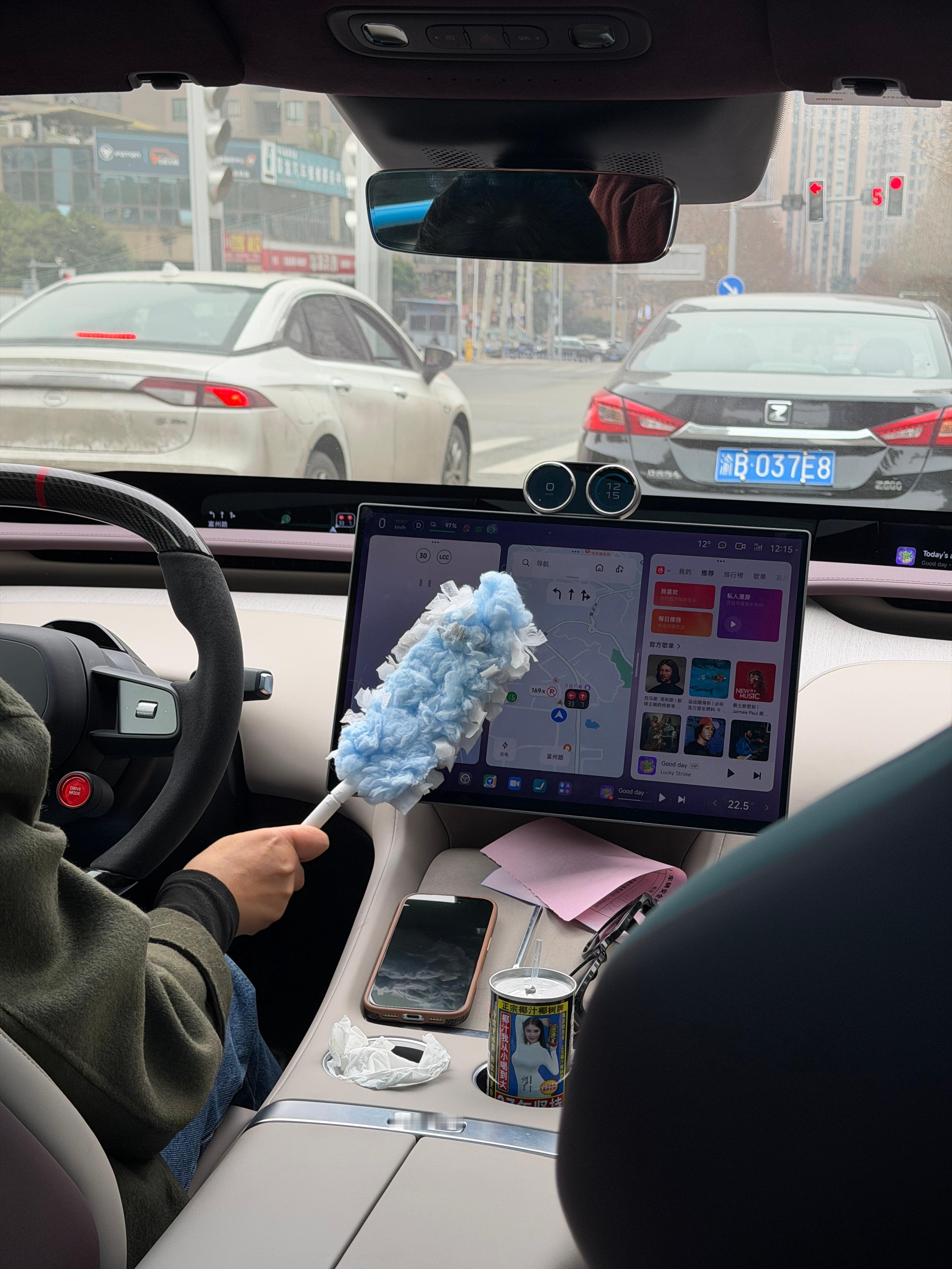 女人老了之后很喜欢鸡毛掸子啊! 李老师上车必打扫一番、好像是一种仪式感