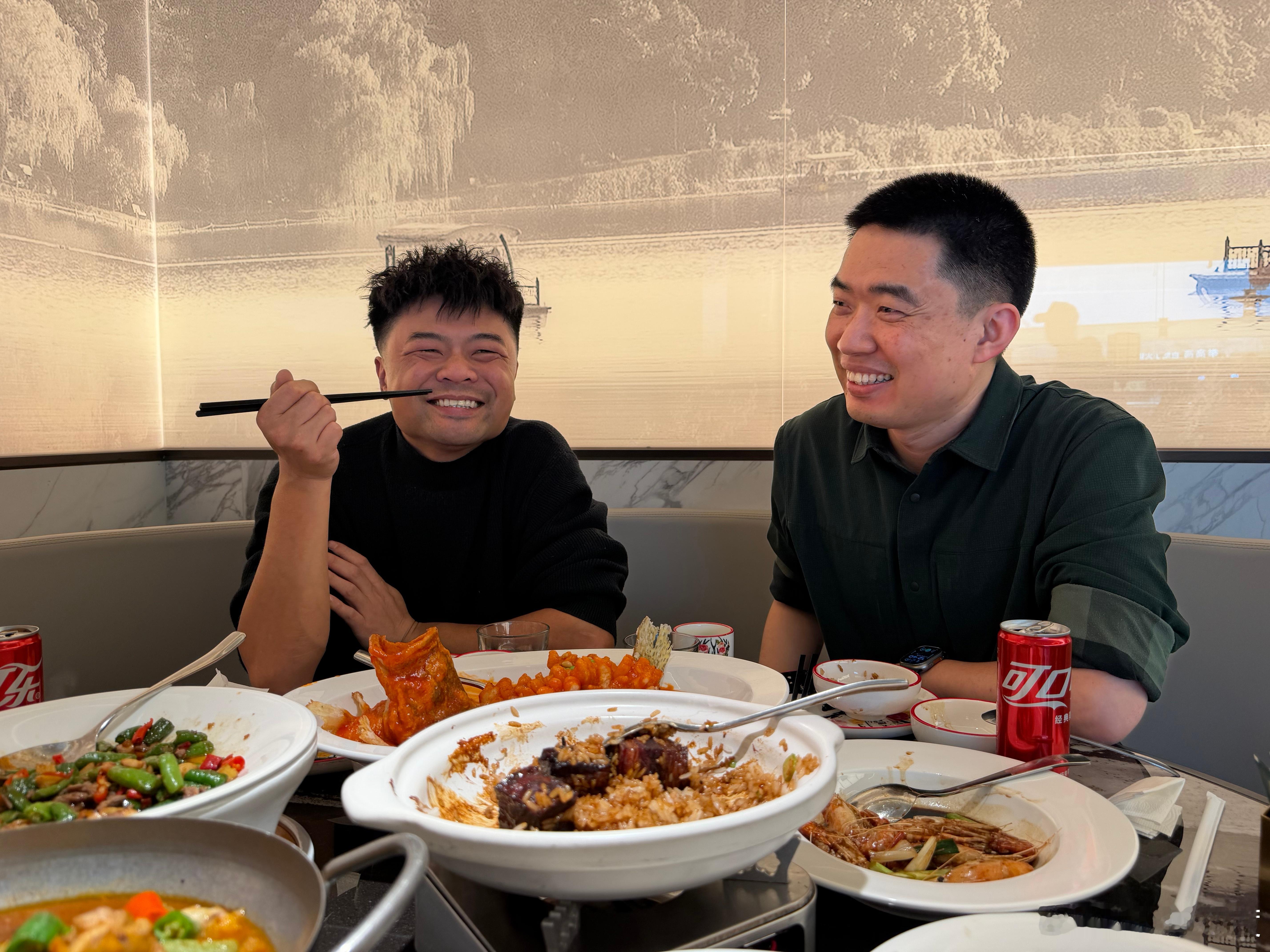 李想去海盐请救人的理想车主姚哥吃饭了,图片来自理想嘉车友会现场直播。