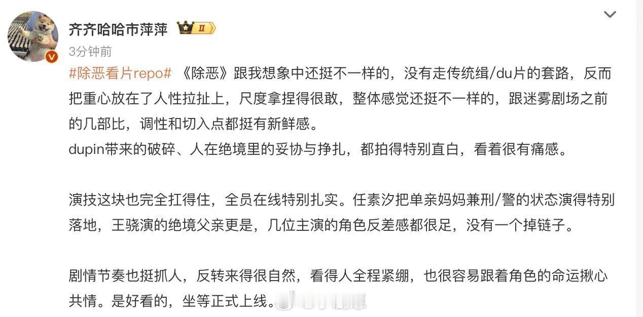 除恶看片repo刷到好多人在聊《除恶》,都说拍得很用心,角色刻画得细腻真实,悬念感拉满,我已经被狠狠种草!