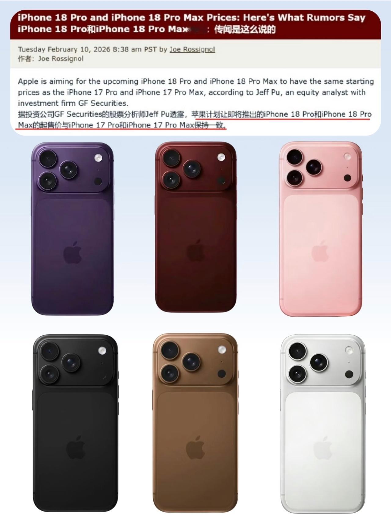 iPhone18Pro再爆料展望今年秋季即将发布的iPhone 18 Pro系列,苹果肯定会推出一款全新的标志性颜色,用以替代现有的星宇橙。据最新爆料,苹果计划从咖啡色、紫色、酒红色这三款候选配色中选出一款作为年度主打色。除了色彩上的更迭,iPhone 18 Pro的另一大显著变化是灵动岛的面积大幅缩小。据悉,iPhone 18 Pro的灵动岛宽度将由上代iPhone 17 Pro的20.76mm缩减至13.49mm,正面视觉观感将变得更加简洁。实现这一变化的关键在于硬件布局的优化,爆料称苹果将红外泛光感应元件成功置于屏下,并将其位置移至屏幕左上角。由于前置摄像头、点阵投影器以及红外镜头的位置依然保持居中,这种错位排布有效压缩了顶部的挖孔区域,使得iPhone 18 Pro拥有了更高的屏占比。
