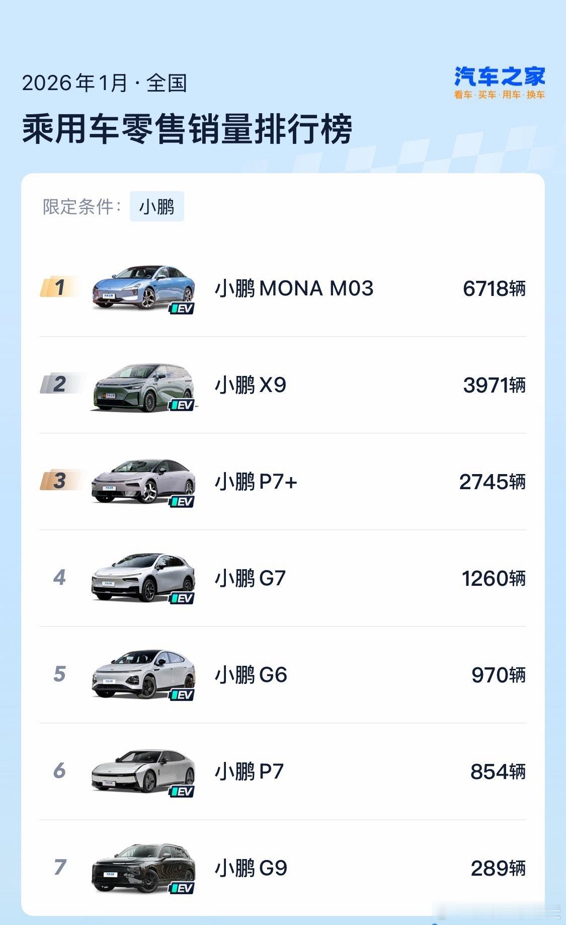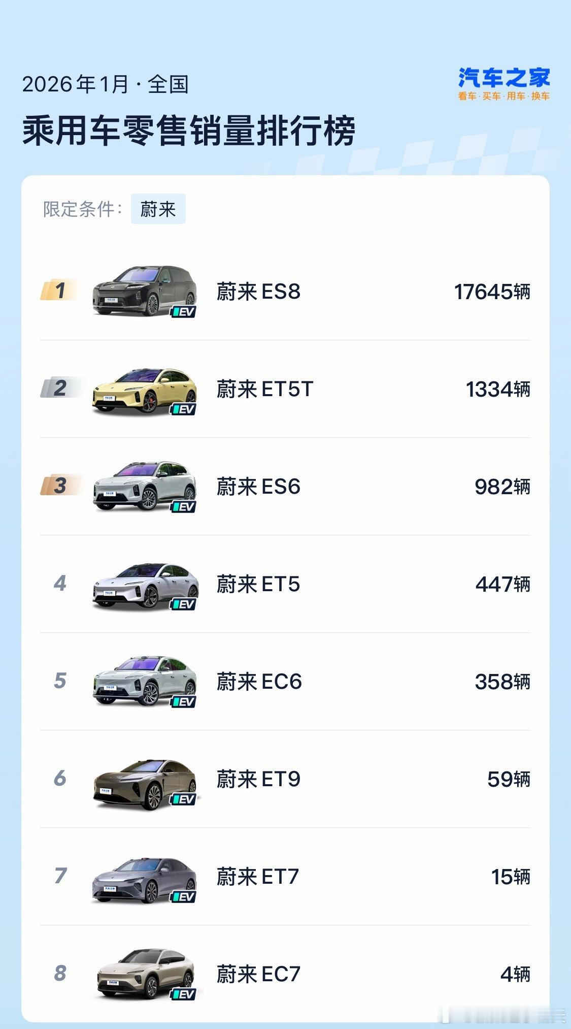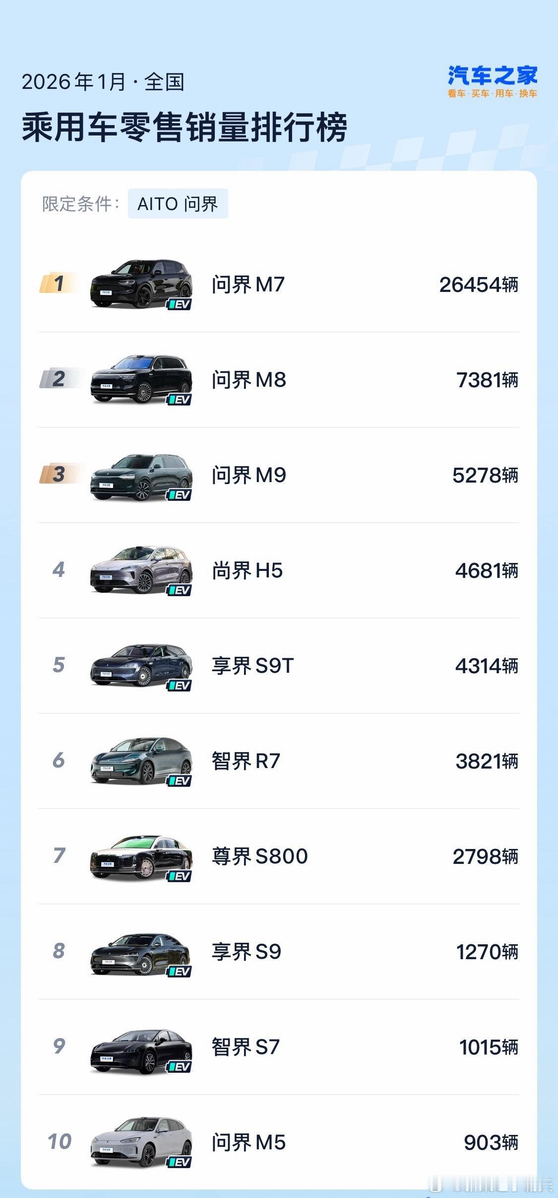 2026年1月,华米蔚小理,各车型销量~