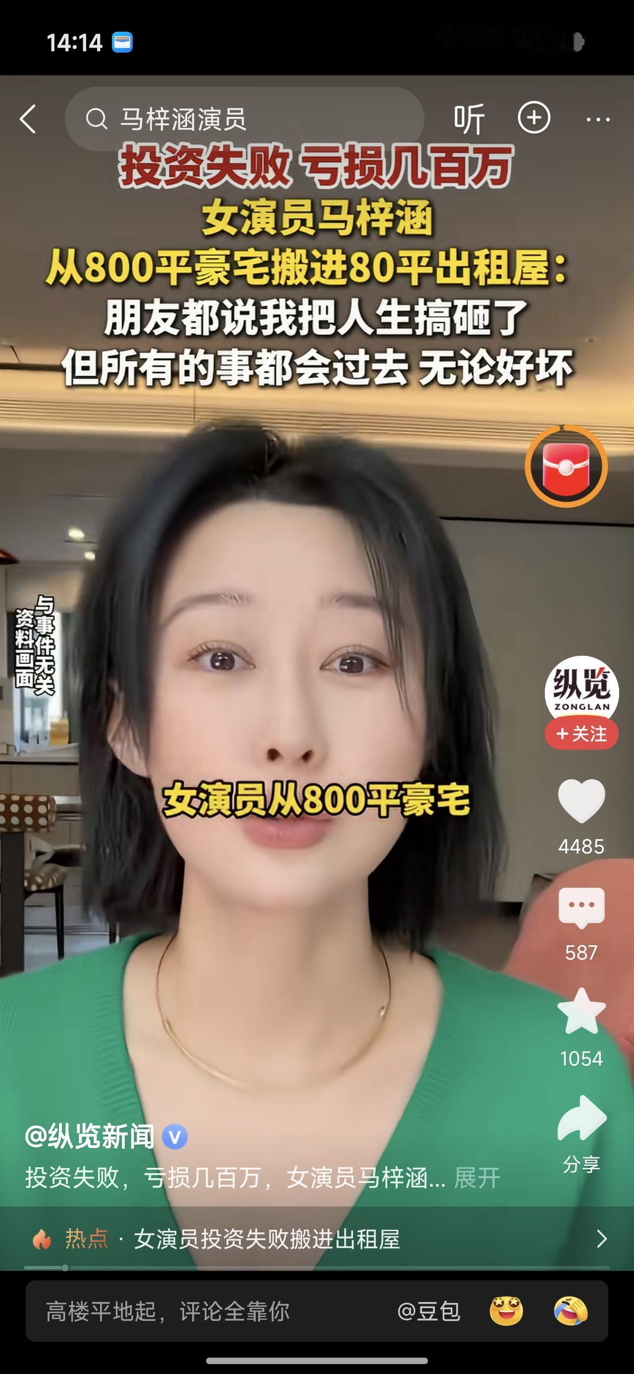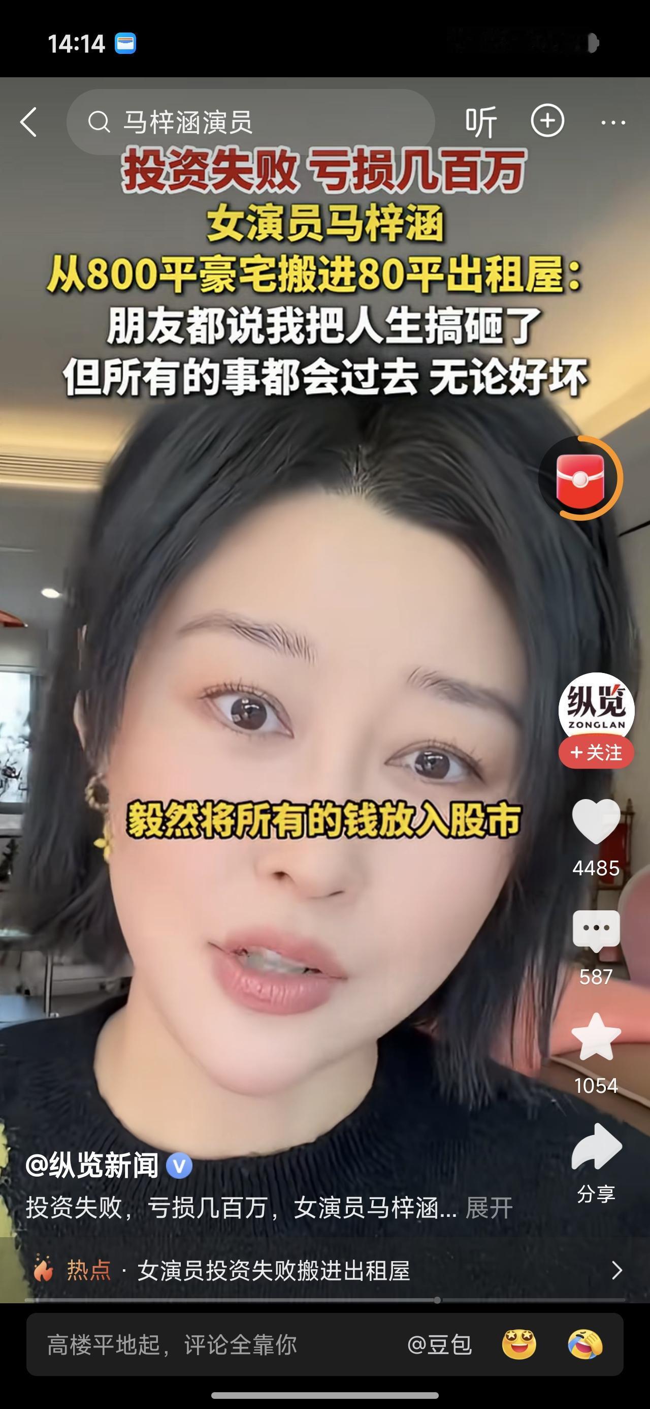 亏损几百万的女演员马梓涵,从八百平豪宅搬到80平出租屋。她说成名以后隐婚,后离婚。为了挣钱养活自己,几百万投入股市,这姑娘,胆子真大。 退出娱乐圈,搬到80平出租屋。她说朋友说她把人生搞砸了,但她说无所谓,无论好坏,都会过去。 这孩子心真大。但令人佩服。好日子能过,没钱日子也能过。我一天酸这个酸那个的,今天看见他,真挺佩服。加油啊,加油。