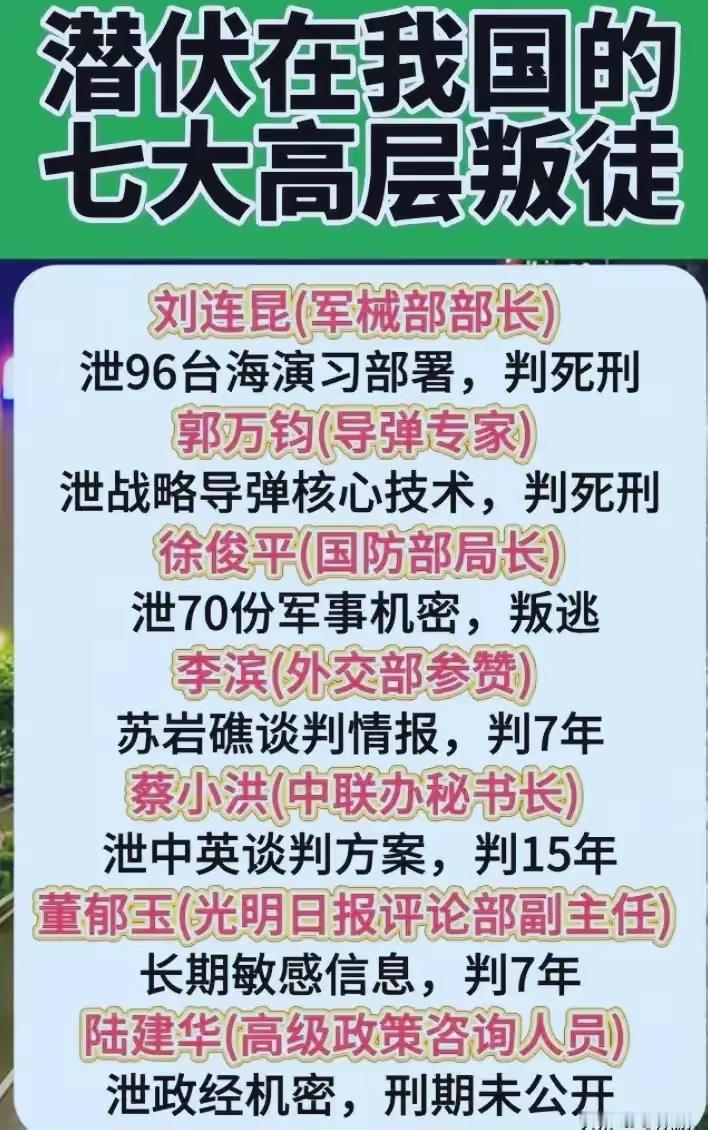 潜藏在高层的七大叛徒!给国家造成的损失无法估量!这要是在战时,得有多少将士倒在血泊中。对叛徒一定要格杀勿论,否则后患无穷!