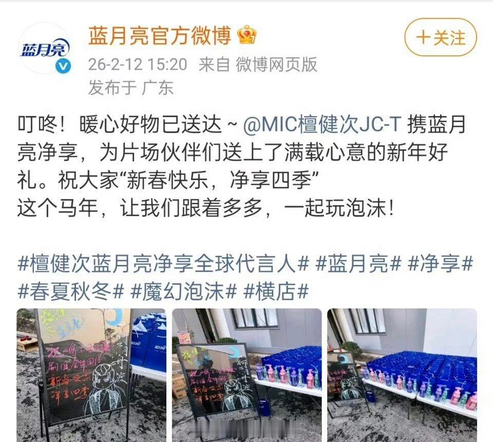 蓝月亮 为檀健次何不同舟渡剧组送上了新年好礼,品牌霸霸太宠了