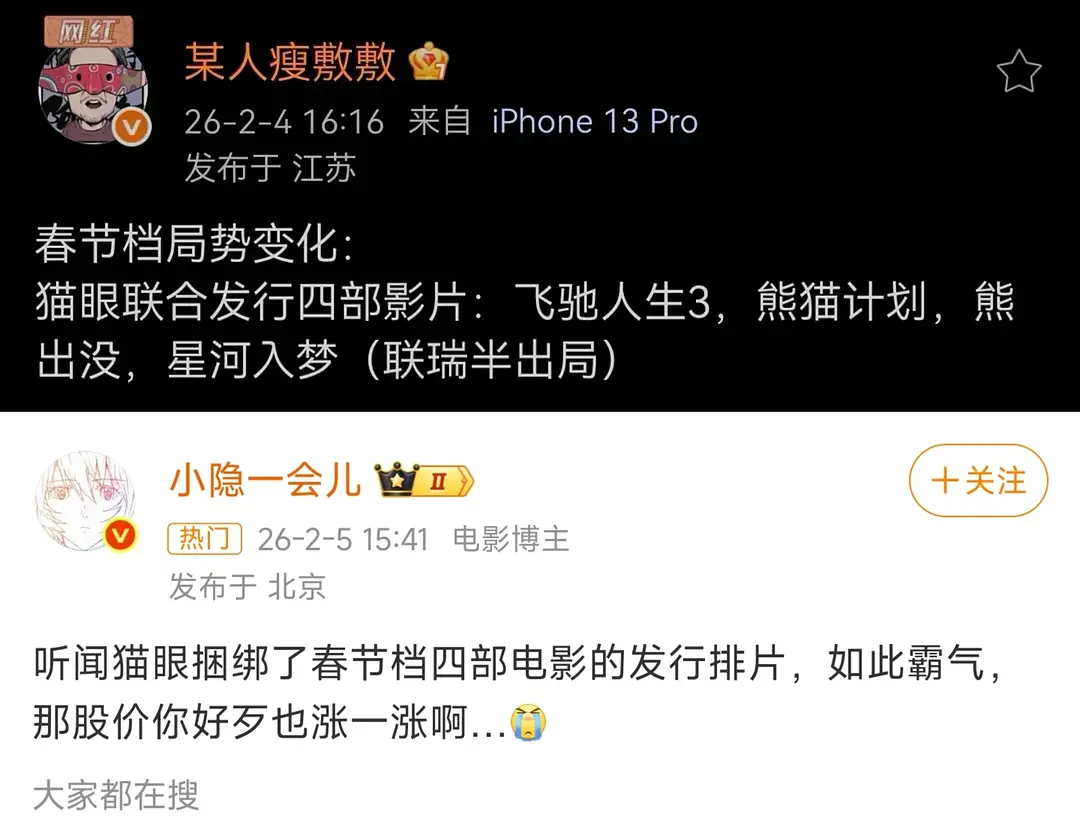 又有博主发声说,猫眼捆绑四部电影要求电影院排片不得低于68%,这四部电影分别是飞驰人生3、熊猫计划、熊出没、星河入梦,怎么看?