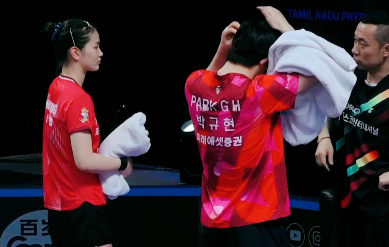爆大冷!印度打法真怪,朴奎炫/金娜英阴沟里翻船! 金奈挑战赛 第一局 朴奎炫/金娜英开局1:9落后, 不过两人实力还是远胜对方, 适应了之后追到了9:10, 巴特查尔吉/戈什叫了暂停, 回来11:9拿下 第二局 朴奎炫/金娜英7:0开局 11:3拿下 第三局 两队打的胶着, 最后朴奎炫/金娜英9:11再输一局 第四局 朴奎炫/金娜英3;0开局, 9:3领先,11:6拿下 第五局 朴奎炫/金娜英2:0领先, 结果印度队连赢5球, 5:2反超, 朴奎炫/金娜英9:11输了。
