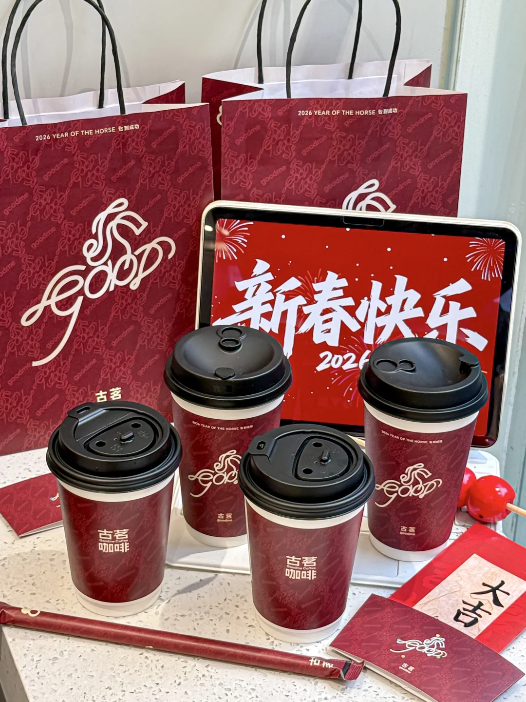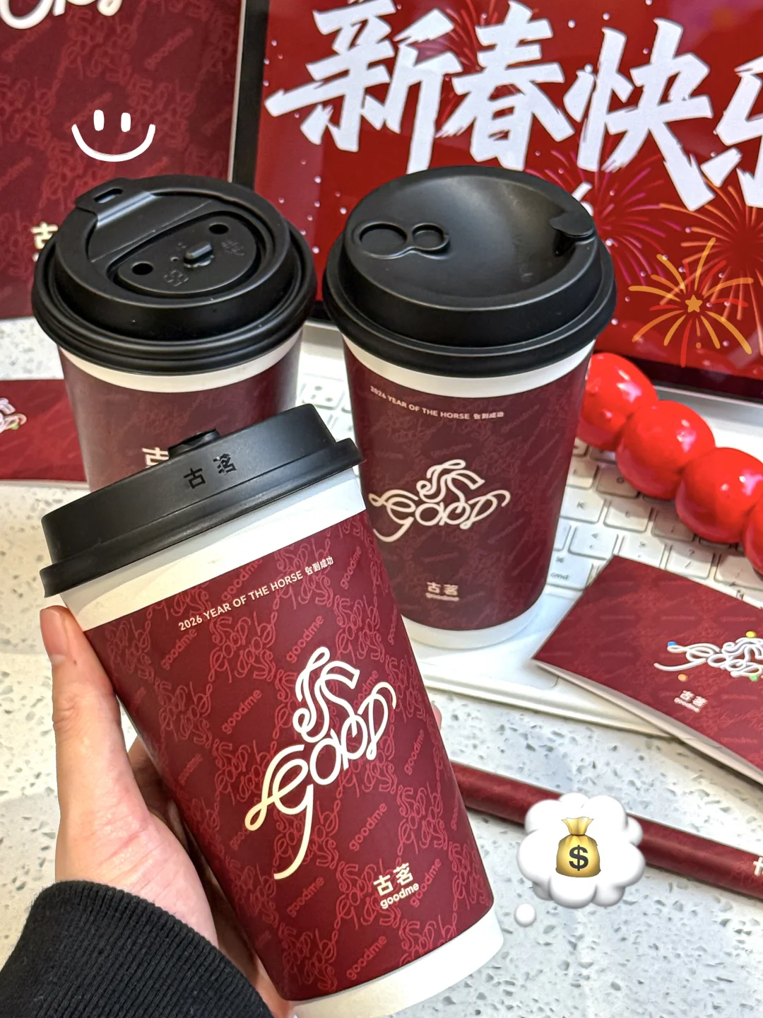 终于等到你!!古茗的马年限定包装来了!! 酒红色又喜庆又低调 拿在手里质感直接拉满 纸袋和杯子上还有“马”到成功的小巧思~ 感觉年夜饭拍照当道具也会超出片!📸 姐妹可以冲了!!