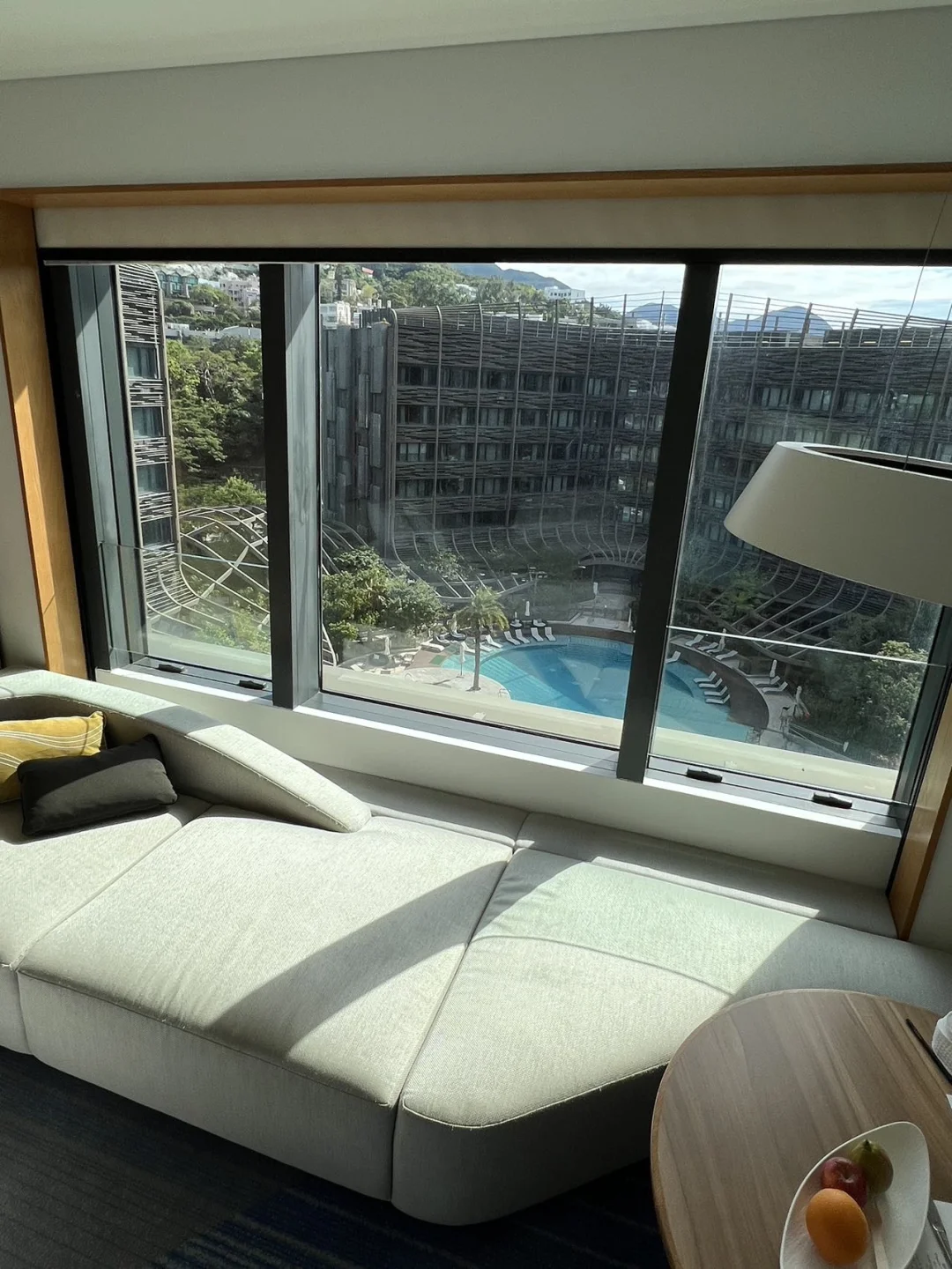 大大的落地窗可以俯瞰整个泳池景致,晨起心情都变超好