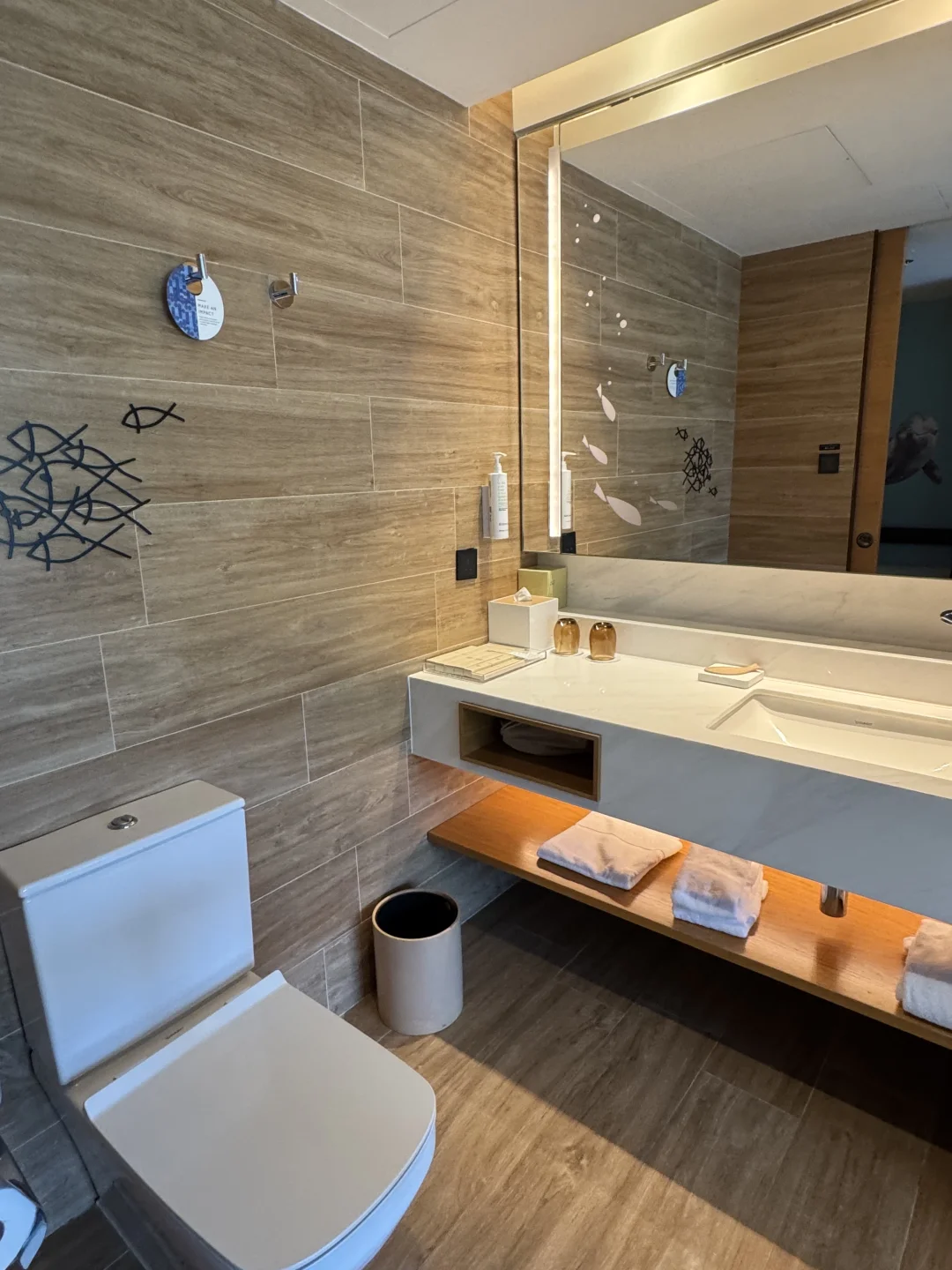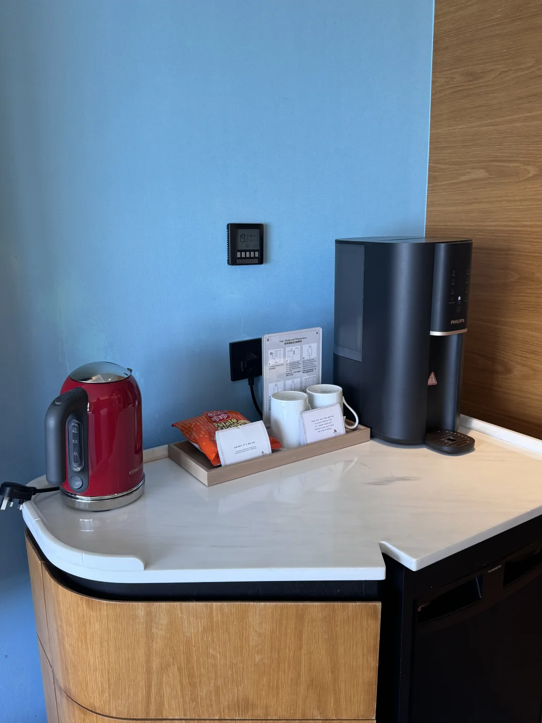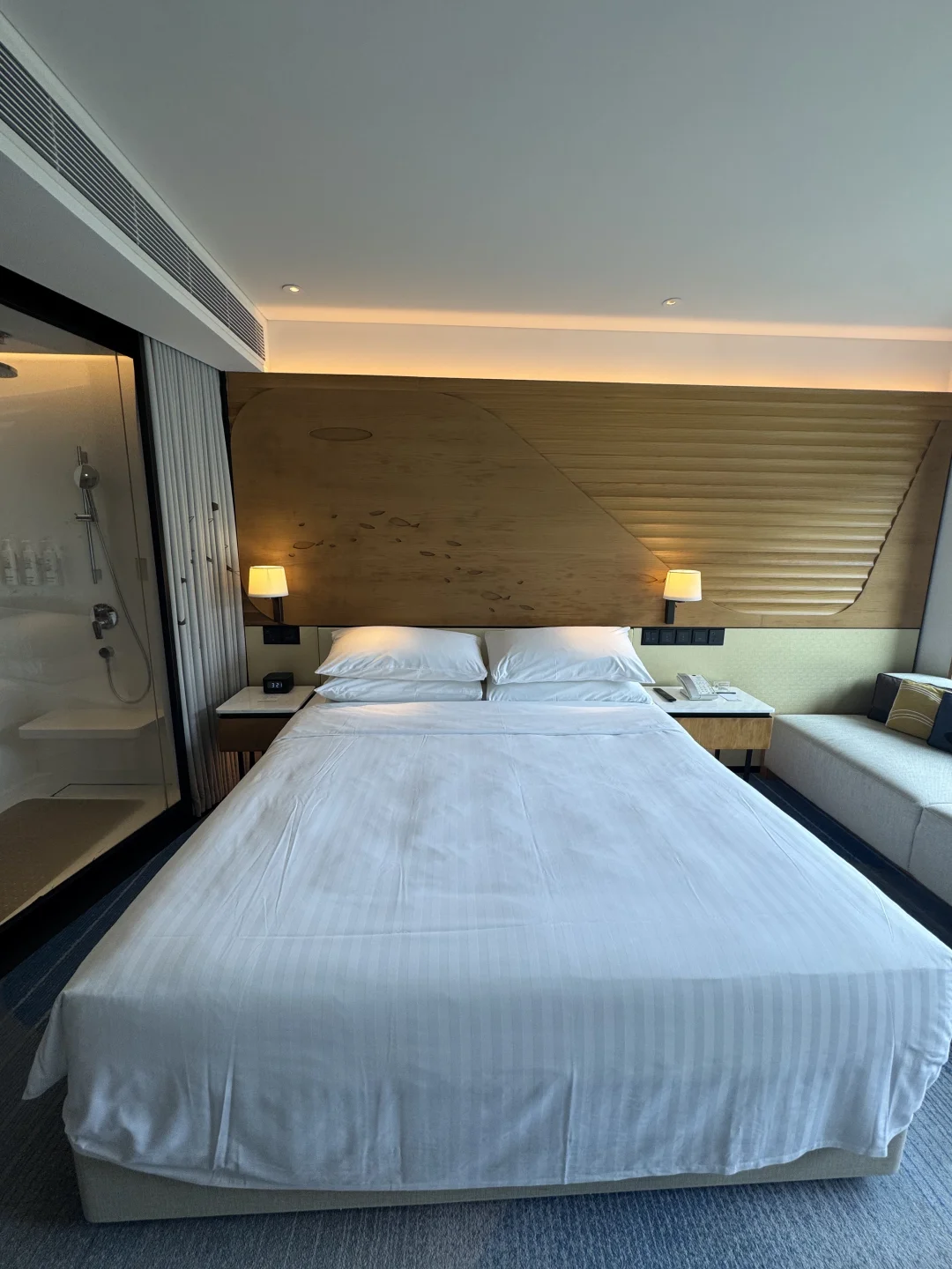 床品软硬适中,奔波一天躺上去直接秒睡,房间里配了纯净饮水机,对于离不开热水的我来说真的超方便,洗漱用品是质感满满的品牌款,香味高级不刺鼻,连化妆镜都带补光,女生化妆超友好!