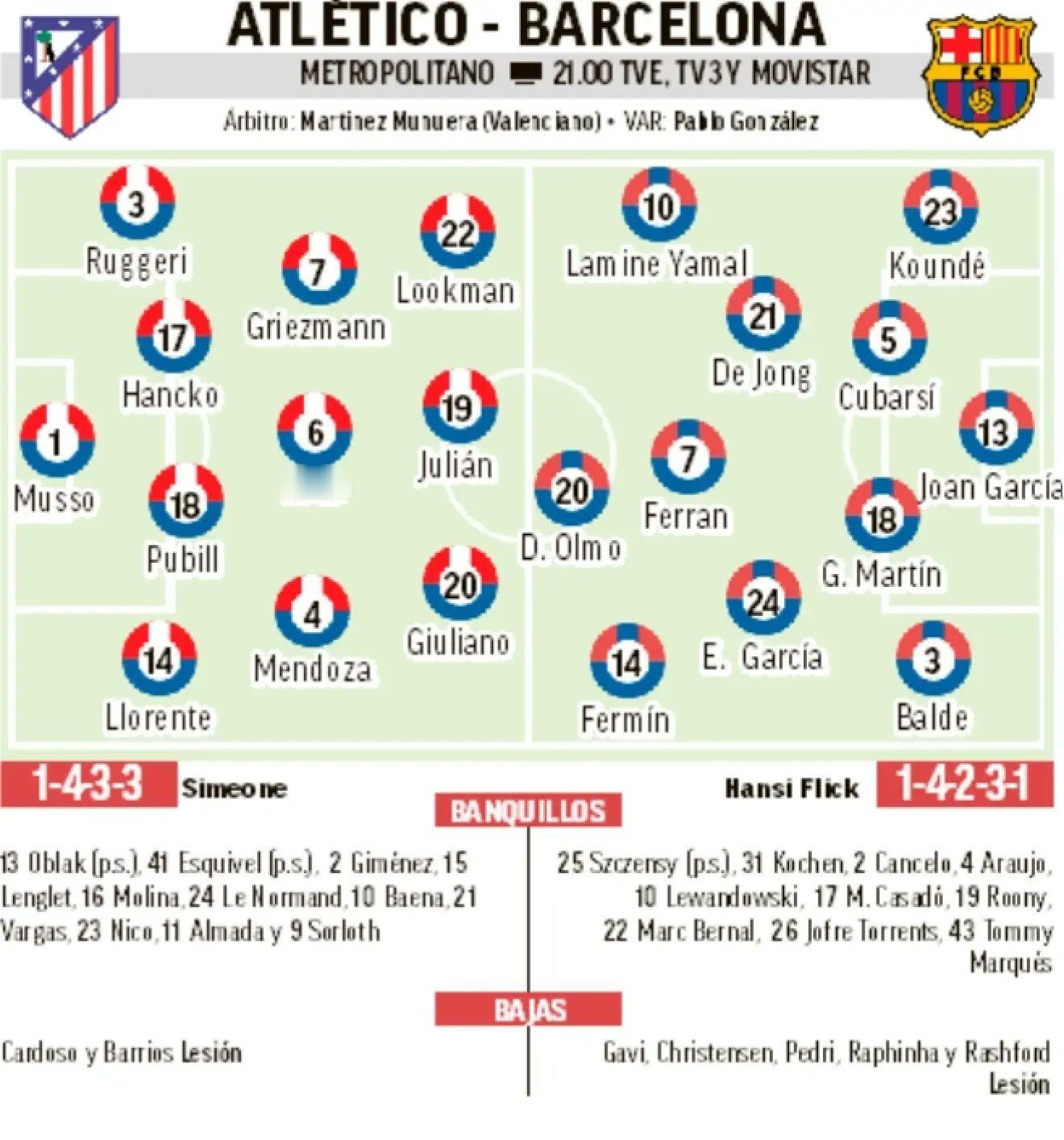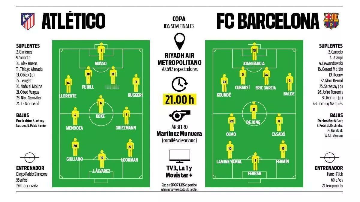媒体预测巴萨VS马竞比赛首发阵容。🔥🔥🔥🔥🔥🔥🔥🔥🔥🔥🔥马