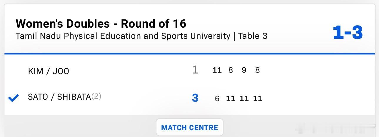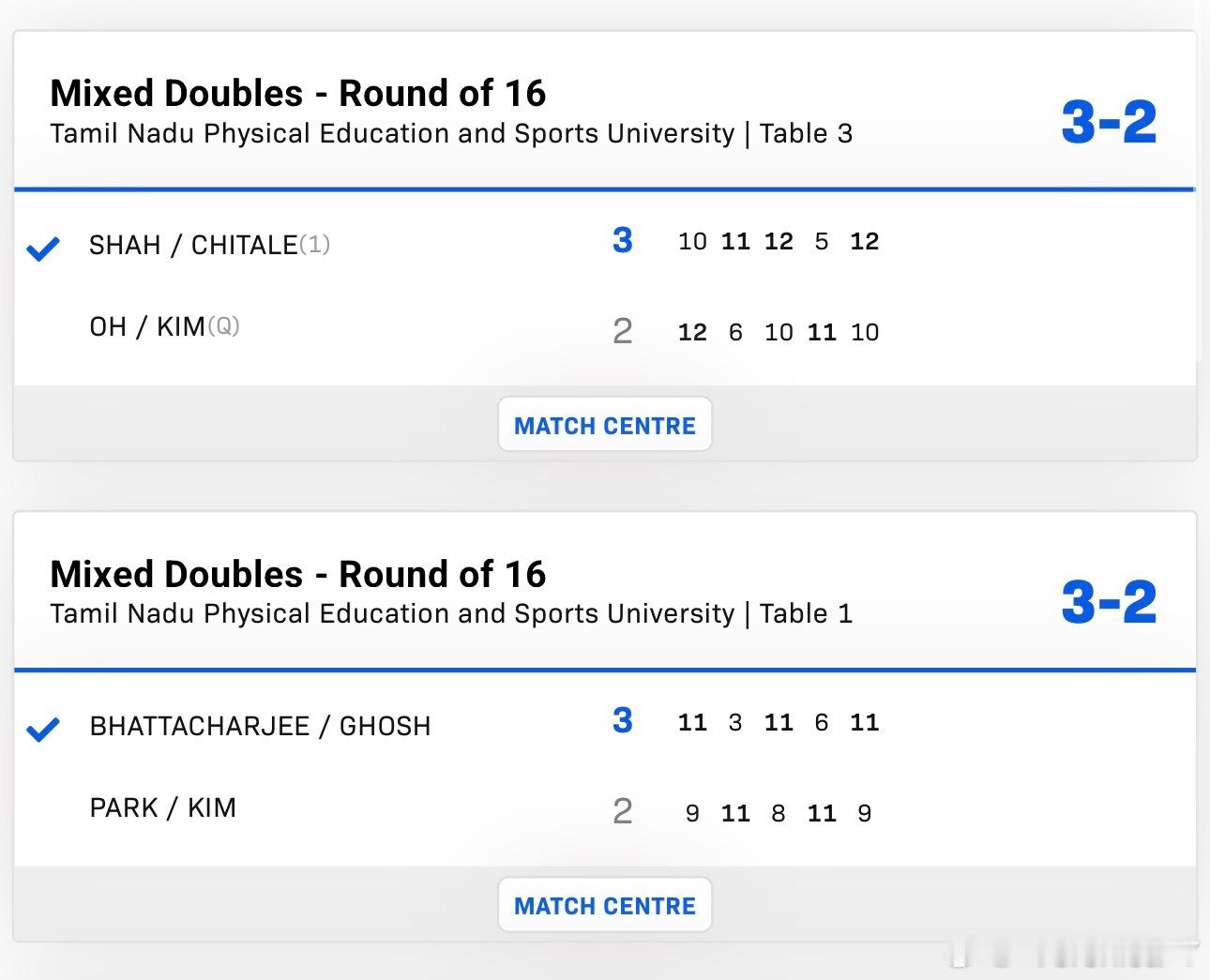 2026wtt金奈球星赛男混合双打/女子双打16-8斯瓦斯提卡/安库尔3-2朴康贤/金娜英玛努什/奇塔勒3-2吴盛焕/金成珍佐藤瞳/芝田沙季3-1朱芊曦/金成珍