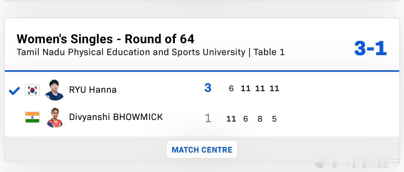 女子单打64-32柳韩娜3-1迪乌杨诗