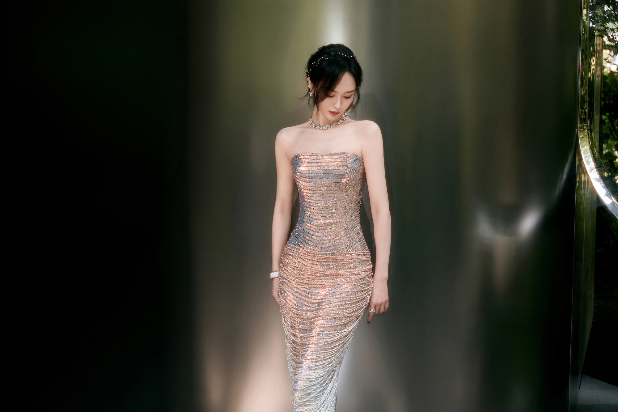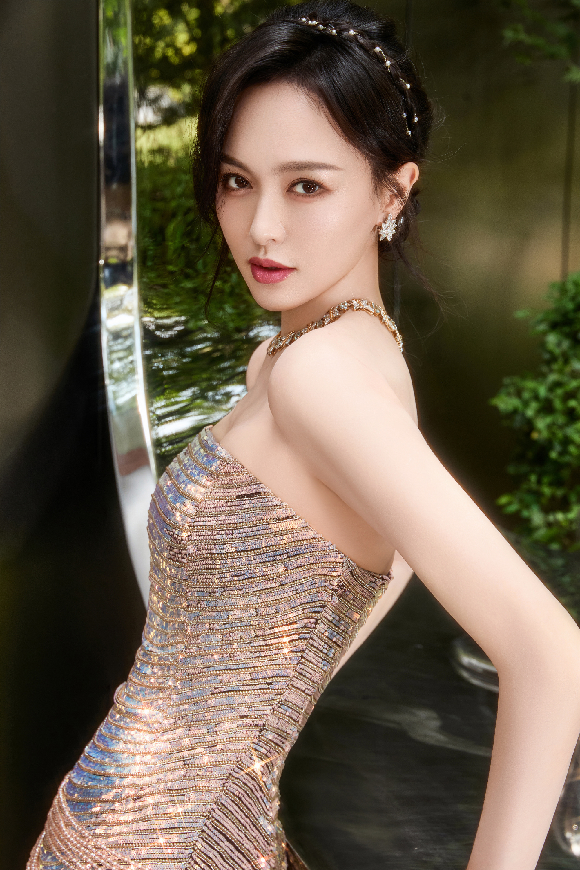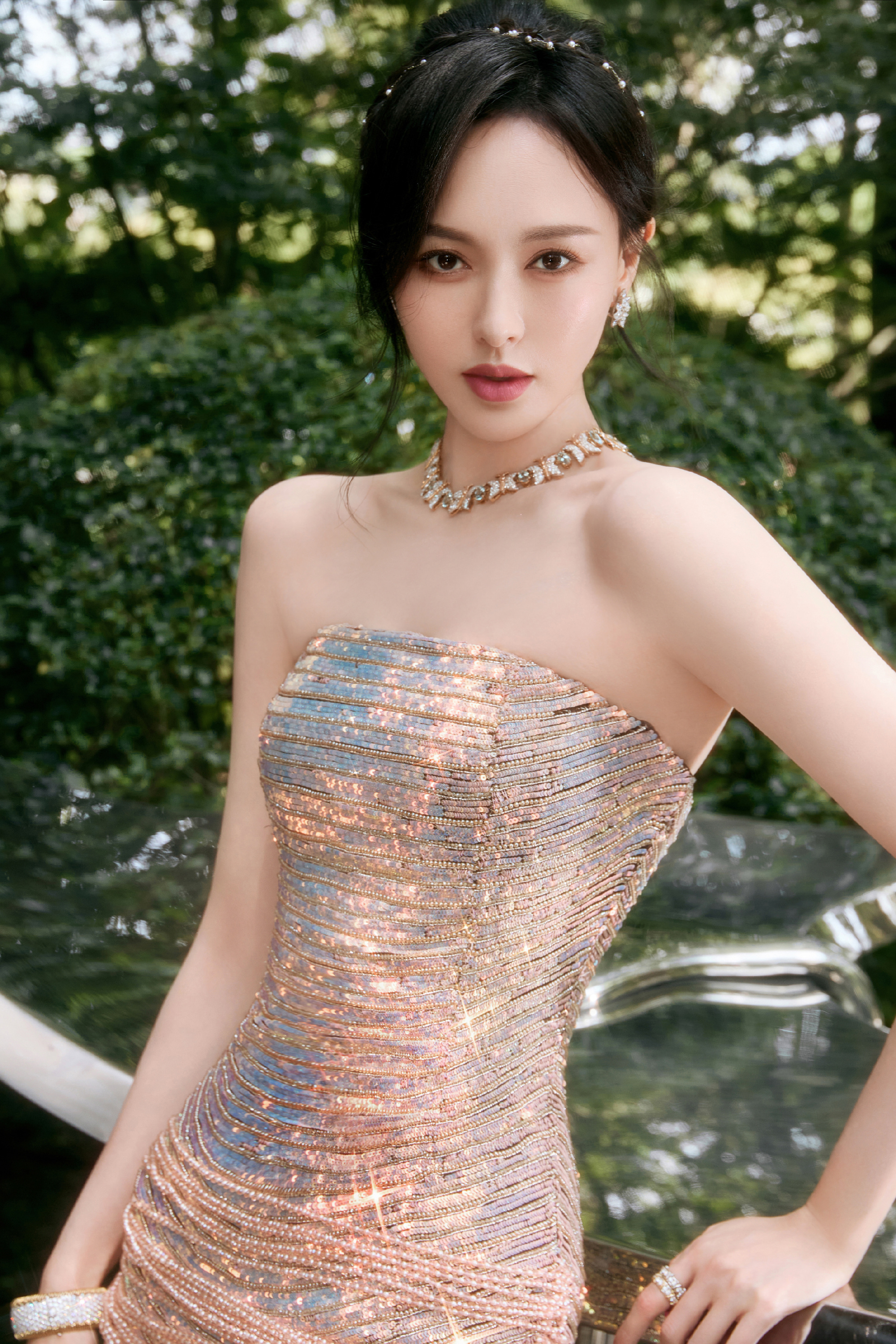 唐嫣今日仙气美人上线, 鎏光绿意,空气中满是属于巴蜀的松弛感。唐嫣