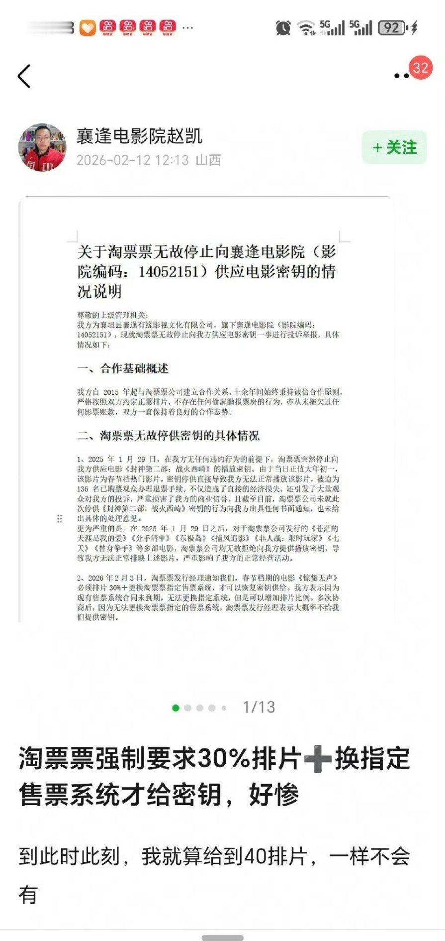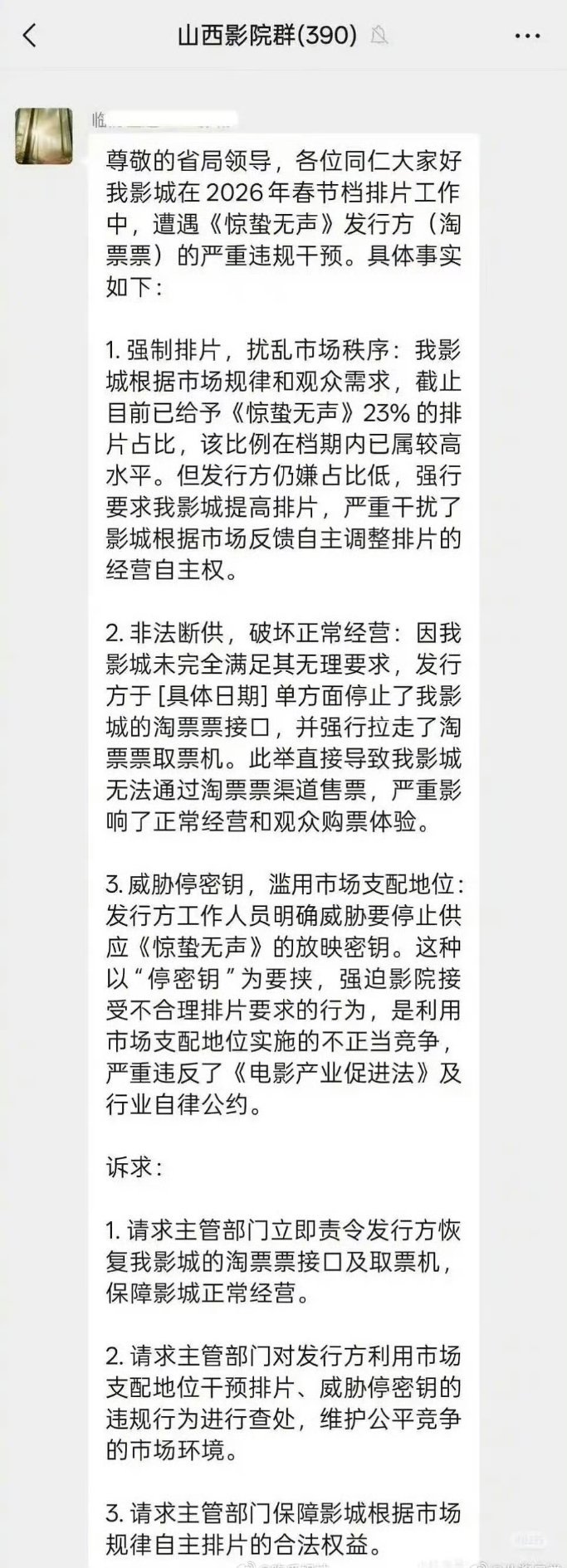 曝惊蛰无声发行方强制影院排片看了一下过程,发行方确实不占理。当初满江红和流浪地球2同期就因为排片产生不少争议,希望有关部门能管一管这种强制排片行为