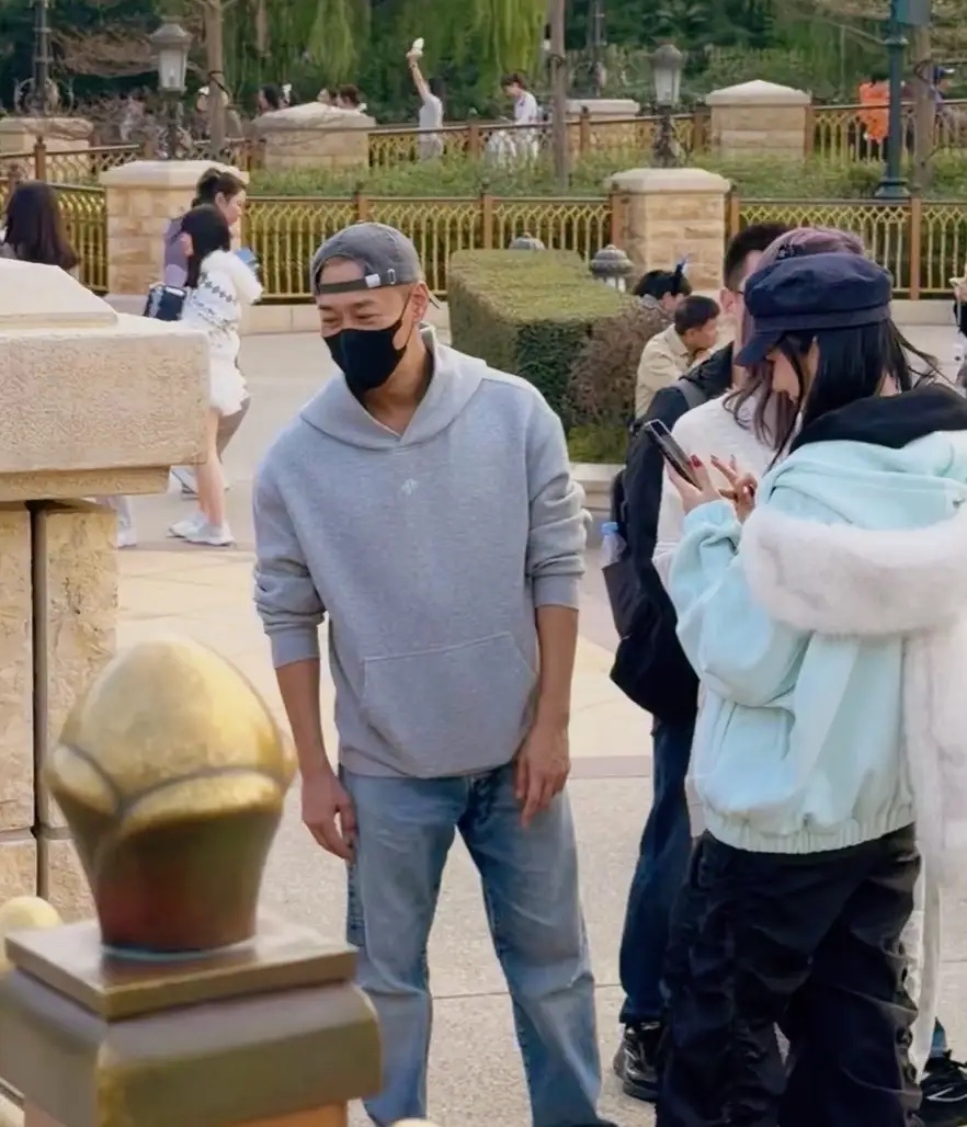 有网友在港迪偶遇陈浩民和林峰,两家人关系很铁!陈浩民还抱着老婆拍照,他老婆个子好高啊!