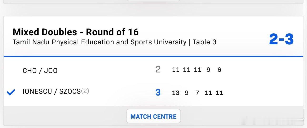 混合双打16-8斯佐克斯/爱德华3-2赵大成/朱芊曦