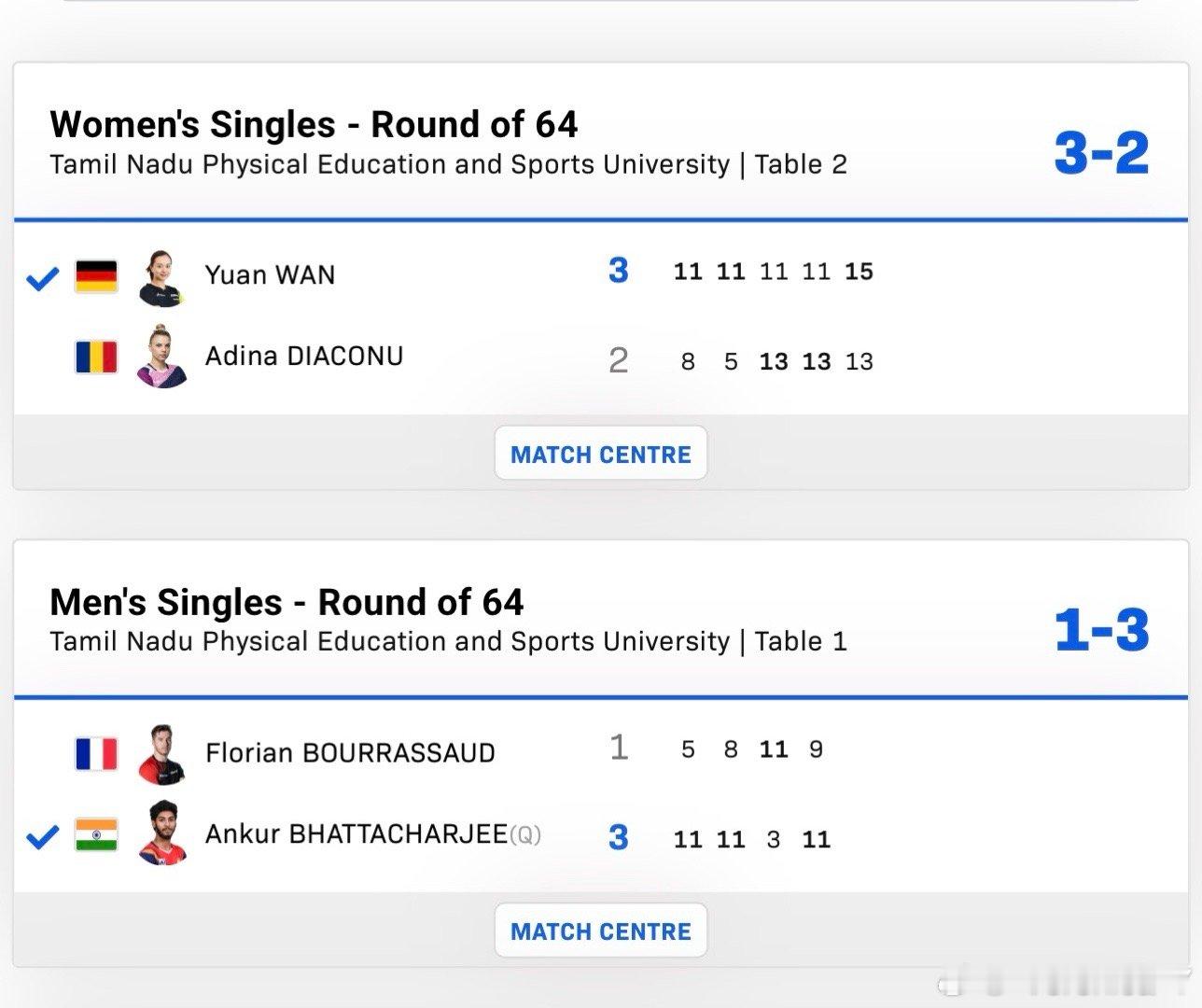 2026wtt金奈球星赛男女子单打64-32万远3-2迪亚科努安库尔3-1弗洛里安