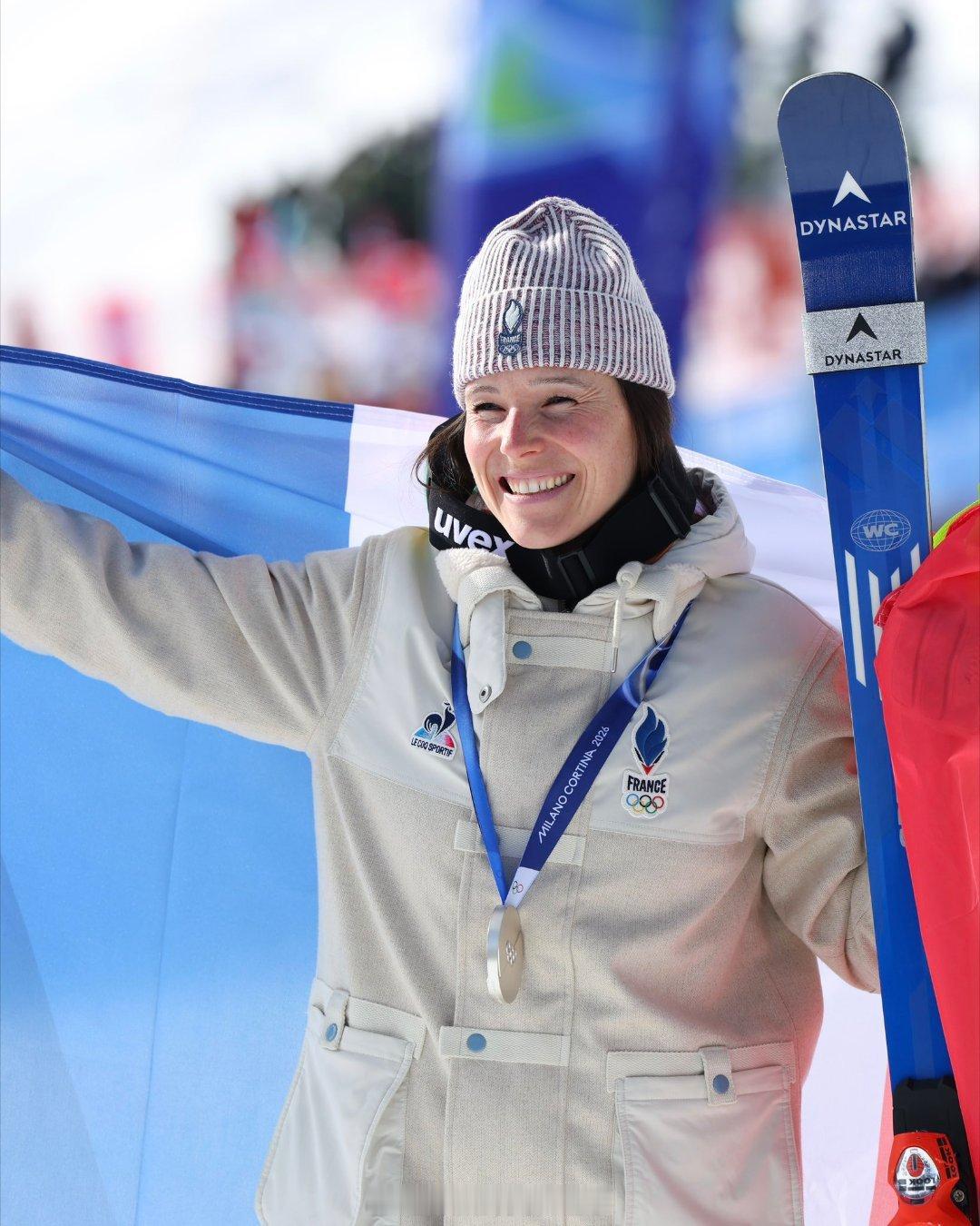 这是——👉 本届冬奥会法国队在高山滑雪项目的首枚奖牌👉 也是法国女子自 1992 年以来,首次在 Super-G 项目登上奥运领奖台!🤩