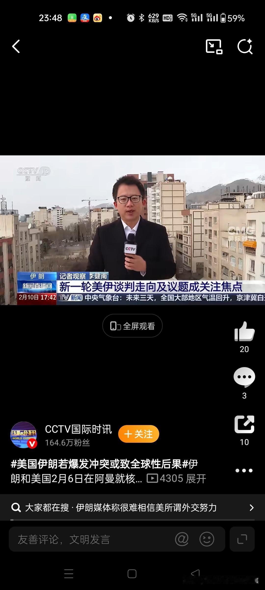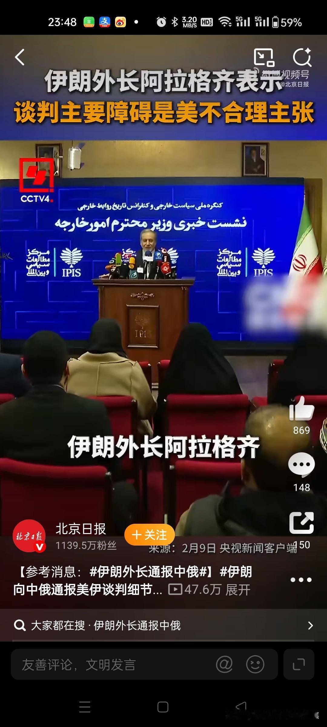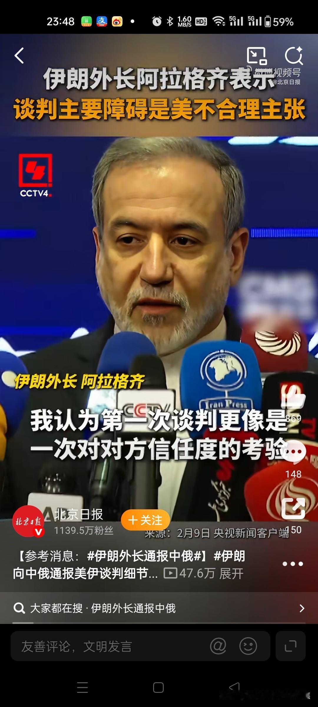 伊朗去年被打是因为“高估筹码”且“不相信特朗普真会动手”,今年伊朗会否接受教训?特朗普2025年6月谈判期间下令打击伊朗核设施已有先例,特朗普声称伊朗当时“高估筹码”且“不相信我真会动手”,而此次伊朗已处于“非常不同”的境地。应该知道要谈判解决问题。 特朗普在2026年2月10日接受采访时再次以军事行动威胁伊朗,称若谈判失败将“像去年6月那样采取强硬行动”,并强调伊朗此次谈判处境“非常不同”,而伊朗则向中俄通报谈判细节,同时警告将对任何军事侵略进行毁灭性回击。 一、当前谈判态势与美方威胁升级 军事施压与谈判同步推进 美国总统特朗普于2026年2月10日对美国阿克西奥斯新闻网站表示,美伊谈判只有“要么达成协议,要么采取强硬行动”两种结果。他援引2025年6月谈判期间下令打击伊朗核设施的先例,声称伊朗当时“高估筹码”且“不相信我真会动手”,而此次伊朗已处于“非常不同”的境地。为强化施压,特朗普证实正考虑向中东增派第二支航母打击群(目前“亚伯拉罕·林肯”号已部署该地区),将其视为对伊谈判的“重要筹码”。@CCTV国际...920 美方核心诉求与谈判策略 特朗普明确要求任何协议必须涵盖伊朗核计划及弹道导弹问题。他声称伊朗“非常渴望达成协议”,但若谈判破裂,美军将迅速行动。美方将军事部署与外交谈判并行的策略被分析人士视为“强制外交”手段,旨在迫使伊朗让步。@央视网29大皖新闻东营网官方微博观察者网央视网中国军号 二、历史背景:2025年6月谈判与军事打击 袭击事件与美伊认知差异 2025年6月,美伊核谈判期间,特朗普以伊朗“拖延时间”“无意达成协议”为由,下令美军对伊朗三处核设施实施精确打击,声称目标为“彻底摧毁伊朗核能力”。特朗普事后称此举是为“推动伊朗重回谈判桌”,并警告伊朗“必须结束战争”。而伊朗外长则将此次袭击描述为“非常糟糕的经历”,伊朗舆论批评美国在谈判期间突袭是“战略模糊”的惯用手段。@北京日报412 伊朗的误判与后续影响 特朗普指责伊朗在2025年谈判中“高估自身筹码”,误判美方动武决心。袭击导致伊朗于同年6月13日退出谈判,特朗普随即威胁“下一轮打击更残酷”。此次事件加剧了伊朗对美方诚信的质疑,伊方多次强调需警惕历史重演。@大皖新闻24北京日报CCTV国际时讯CCTV国际时讯 三、伊朗的应对策略与国际协作 外交斡旋与盟友通报 为应对美方高压,伊朗在2026年2月阿曼谈判后,由副外长向中国和俄罗斯驻德黑兰大使通报谈判细节,外长阿拉格齐称中俄为“战略伙伴”,承诺继续磋商。此举被视为伊朗寻求国际支持以平衡美国压力。@上饶发布16 军事防御与威慑表态 伊朗外交部发言人巴加埃于2月10日警告,若遭受军事侵略将予以“毁灭性回击”,并指以色列行动“离不开美国协调”,暗示反击可能扩大至地区冲突。伊朗政治分析人士进一步指出,若美伊开战,伊朗将视之为“生存之战”,可能切断西亚能源供应并波及驻有美军基地的国家。621 谈判底线与国内共识 伊朗总统佩泽西墙和原子能组织主席伊斯拉米明确表示,任何协议需满足三项前提:全面解除制裁、维护国家主权尊严、遵循互利原则。伊方拒绝讨论将浓缩铀运出境外或稀释60%丰度浓缩铀等单边让步议题。6 四、地区风险与国际关切 战争可能性的评估 多方分析指出,尽管谈判重启,但美军持续增兵使战争风险居高不下。专家认为美伊均面临两难:美国担忧小规模打击无效、大规模行动引发地区混乱;伊朗则受限于不对称实力,大规模反击恐危及政权稳定。346 以色列的角色与担忧 以色列被视为关键变量。伊朗分析人士警告,以总理内塔尼亚胡仍主张军事打击伊朗核设施,且以方2025年曾承诺“仅在美伊谈判失败后动手”,需警惕其单边行动破坏谈判进程。613