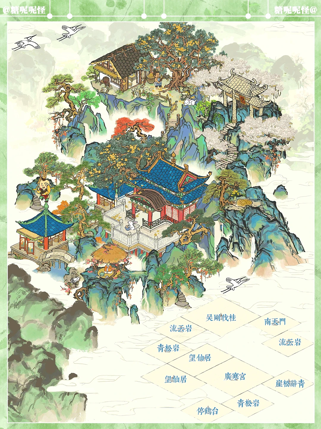🥰建筑:停鹤台|广寒宫|望仙居|青松岩|崖松辞青|吴刚伐桂|南天门|流云岩