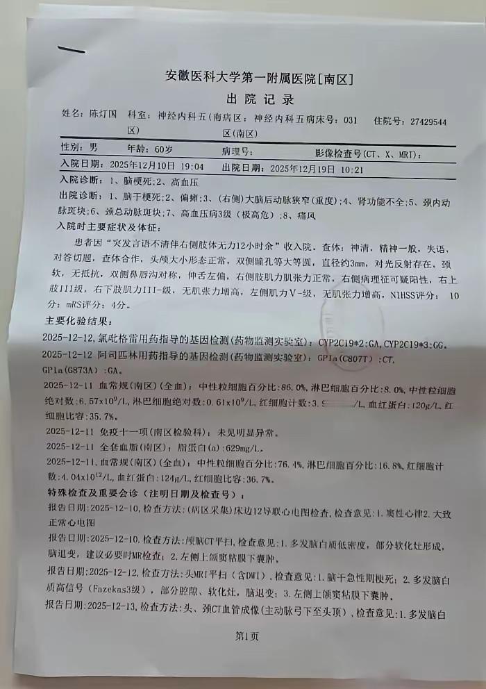 “这就是命!”安徽肥西,一女子的公公突发脑梗瘫痪在床,接来大姑子照顾,大姑子又突然晕倒,确诊脑动脉瘤破裂,女子丈夫跟医生沟通姐姐病情时,也晕倒被诊断为脑干出血,送入ICU抢救。最后,女子的公公丈夫一前一后,只相隔1天去世,大姑姐还在住院,家里40万积蓄花光,人财两空,女子的女儿才9个月大,她觉得天都塌了。网友:麻绳专挑细处断,厄运专找苦命人。 女子是安徽肥西普通的农村妇女,一家五口靠着几亩农田和丈夫外出务工的收入生活,日子过得平淡又踏实。9个月大的女儿是全家的希望,咿呀学语的模样总能让一家人忘却生活的疲惫,她从未想过,一连串的致命打击会接连砸向这个本就不富裕的家庭。 公公突发脑梗后彻底失去自理能力,吃喝拉撒都需要专人照料,女子和丈夫既要维持家庭生计,又要贴身陪护老人,实在难以兼顾,这才赶忙联系大姑子前来搭手。大姑子心疼娘家人的难处,放下自家的琐事第一时间赶来,日夜守在病床前照料,连续多日的劳累透支了她的身体,毫无征兆地晕倒后,脑动脉瘤破裂的诊断书,让整个家庭陷入更深的恐慌。 女子每天奔波在医院各个科室,一边照看瘫痪的公公,一边守着抢救的大姑子,丈夫则四处筹措医疗费用,反复和医生沟通治疗方案,连片刻休息的时间都没有。持续的高压和体力透支,让这个家里最后的顶梁柱也轰然倒下,丈夫突发脑干出血被送进ICU,和姐姐成了同一间医院的重症患者。 家里积攒的40万积蓄,是夫妻二人十几年的务工收入、孩子的养育储备和老人的养老钱,短短十几天时间就全部投入治疗,没有留下一丝余地。女子抱着尚在哺乳期的女儿,蜷缩在医院走廊的长椅上,不敢放声痛哭,怕惊扰病房里的病人,更怕吓着怀里懵懂的孩子。 公公和丈夫相隔一天相继离世的消息,彻底击垮了女子的心理防线,朝夕相伴的亲人骤然离去,留下还在抢救的大姑子和嗷嗷待哺的女儿,她站在医院的缴费处,看着催缴费用的通知单,连求助的力气都快被耗尽。 国家卫健委发布的2025年急性脑血管病防治报告显示,脑梗、脑干出血、脑动脉瘤破裂均属于农村地区高发急性重症,这类病症救治周期长、费用高昂,且致死致残率极高。我国超六成农村家庭没有配置商业医疗保险,仅依靠基础医保和家庭积蓄应对重症,极易在短时间内陷入因病致贫、人财两空的困境。 村里的乡亲们得知她家的遭遇,纷纷送来米面粮油和零散的现金,网络上的陌生网友也自发发起小额捐助,这些点滴善意成了女子撑下去的唯一底气。她没有选择逃避,每天按时给大姑子擦拭身体、递送流食,细心照料年幼的女儿,哪怕前路满是泥泞,她也只能咬着牙扛起整个家。 生活从不会因为谁的苦难就手下留情,这场接二连三的厄运,撕碎了一个普通家庭的安稳,却也让我们看见底层普通人在绝境里的坚韧。没有惊天动地的抗争,只是咬牙守住身边的亲人,这份平凡的坚守,藏着最戳心的人间真实。 各位读者你们怎么看?欢迎在评论区讨论。