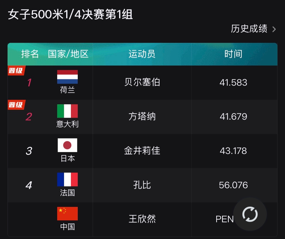 米兰冬奥会短道女子500米1/4决赛张楚桐被判起跑犯规,无缘晋级。王欣然与法国选手碰撞,被判犯规无缘下一轮。范可新小q晋级半决赛