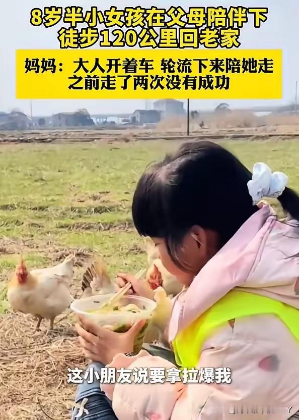 太牛了!8岁女孩徒步117公里回老家过年,5天走完全程。 湖南长沙有个8岁女孩最近成了焦点。别人过年回家坐汽车乘火车,她偏要选条硬核路——从梅溪湖徒步回涟源老家,全程117公里,硬是靠双脚走了5天。 这不是谁罚她,是她自己念了一整年的心愿。爸妈没拦着,反倒轮流陪在身边做后勤,背包里装着热水、干粮,她走累了就停下来歇脚,饿了就蹲在路边啃面包,天黑了就在沿途民宿凑合一晚。 路上不是没考验,第三天过湘江大桥时,寒风卷着雨丝打在脸上,她小脸冻得通红,步子迈得越来越沉,却攥着妈妈的手说“再走一段”。 有司机摇下车窗喊她搭车,她头也不回摆摆手,辫子上的蝴蝶结跟着动作甩得老远——这股犟劲儿,连路边摆摊的大爷都直咂舌:“这娃比小大人还硬气!” 第五天过最后一道山口时,她脚底磨出的水泡破了,渗出血印子染红袜子。爸爸蹲下来想替她贴创可贴,她却往后躲:“我自己来。” 指尖抖着撕开包装,咬着牙把创可贴按在伤口上,眼里亮得像落了星子:“快到啦。”真到了老家村口,她扑进奶奶怀里,仰着小脸笑:“奶奶你看,我走回来的!” 身上的冲锋衣沾着泥点,鞋子磨出洞,可眼睛亮得惊人。旁人问她累不累,她梗着脖子:“一点都不累!”其实爸妈比谁都心疼,妈妈背着她偷偷抹过好几次眼泪,爸爸夜里打着手电筒检查她的脚,却从没说过“别坚持了”。 他们懂,这是孩子给自己设的坎,跨过去才算数。就像妈妈说的:“是她自己选的路,我们能做的,就是陪着她走到底。” 这哪是徒步回家?分明是场成长礼。 8岁的小姑娘用双脚丈量出的,不只是公里数,是“说到做到”的底气。路上遇到的环卫工阿姨给她递过热豆浆,卡车司机摇着喇叭为她加油,连素不相识的村民都站在门口喊“加油”——这些善意像星星,陪着她走完最后一段路。 有人说这家人疯了,让娃遭这罪。可只有他们自己知道,孩子睡前攥着地图画路线的认真,路上数着里程碑蹦跳的雀跃,抵达时眼里炸开的光,比任何奖状都珍贵。 这一路踩过的泥坑、磨破的水泡、淋过的冷雨,最终都成了她攥在手里的勇气,比压岁钱更实在。这大概就是成长最硬核的模样——不是被护在温室里,是自己抬脚踩过荆棘,再笑着说“我没事”。 爸妈的陪伴也够聪明,不挡路、不包办,只做她的后盾,这种“放胆让她闯,兜底给她挡”的爱,才是给孩子最珍贵的年礼。 若干年后她再想起这个冬天,记着的不会是水泡的疼,是风里飘着的豆浆香,是里程碑上的数字越来越小,是推开家门时奶奶手里的糖糕——这些拼起来,才是过年最暖的底色。