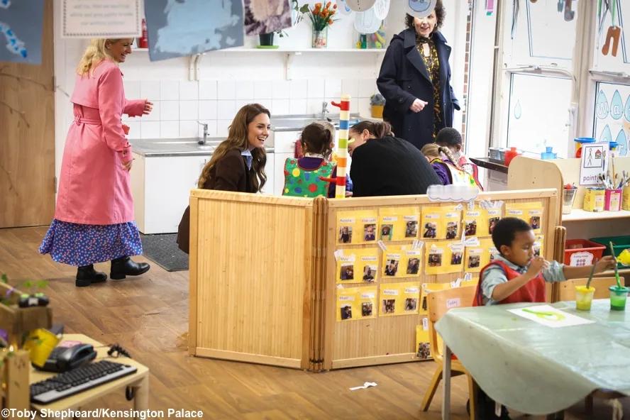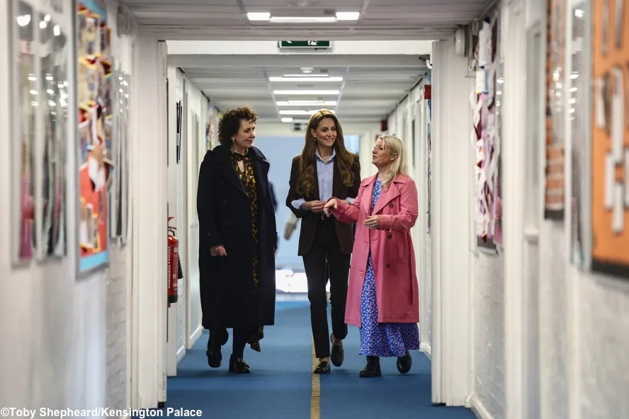 正值英国心理健康周(儿童心理健康周由Place2Be于2015年发起,旨在“为所有儿童和青少年发声,提高民众对儿童和青少年心理健康的认识”),凯特作为Place2B的皇家赞助人(2013年成为其皇家赞助人)访问南伦敦的卡斯尔希尔学院,陪同其一起访问的还有Place2B的领导层……