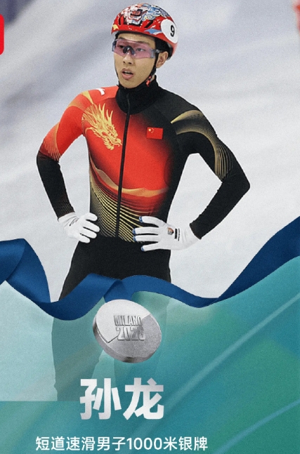 米兰冬奥会短道速滑男子1000米决赛中,中国选手孙龙拿下银牌,帮助中国短道队收获了本届赛事的首枚奖牌。