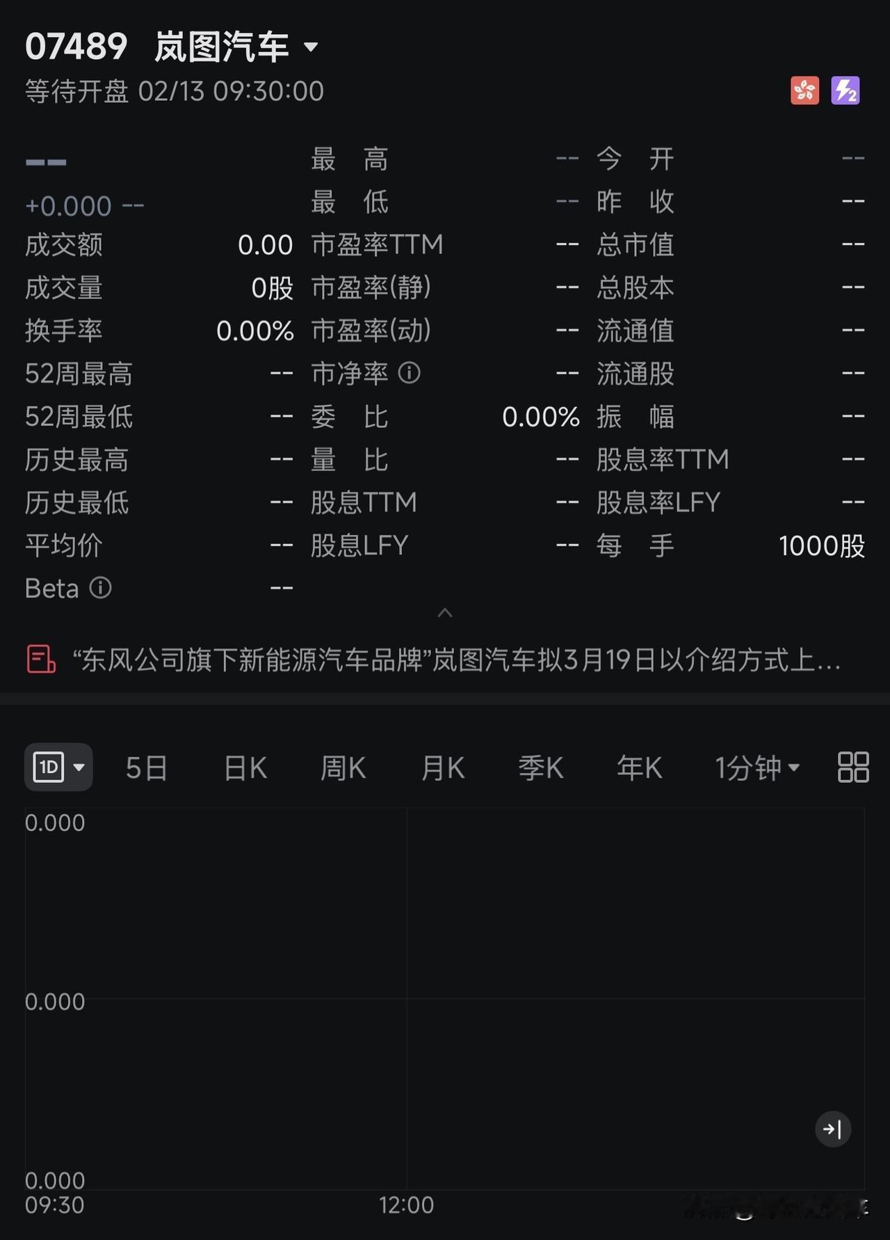 港股迎来“央国企高端新能源第一股”! 岚图汽车或将于3月19日正式登陆港股! 股票正式代码07489.HK,由中金公司独家保荐,每手1000股