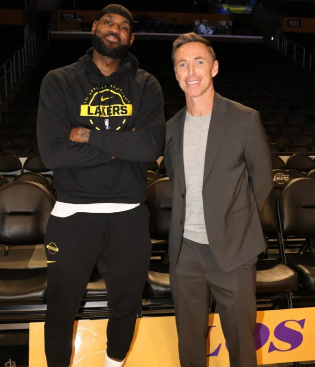 湖人对阵独行侠的比赛即将开始。 赛前,NBA官方晒出勒布朗-詹姆斯与史蒂夫-纳什的合影照片,并配文: “赛前访谈节目即将播放。” 本赛季,詹姆斯场均得到21.8分5.7篮板6.9助攻。