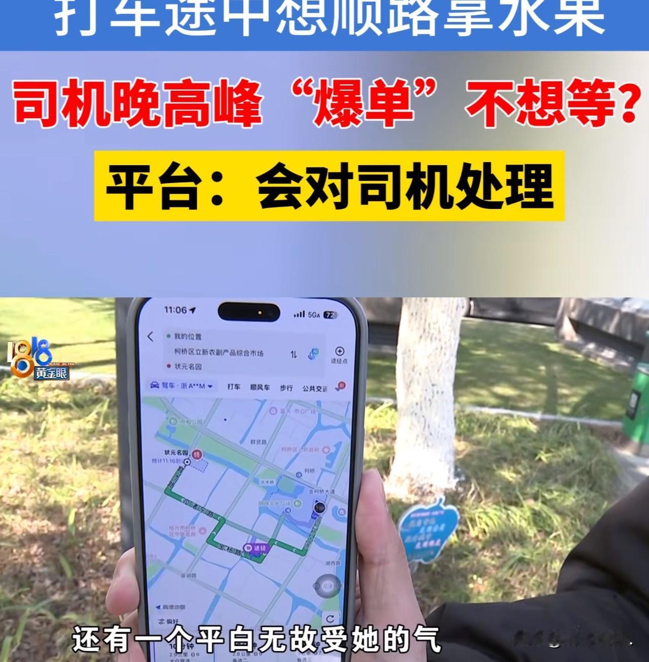 “占便宜占惯了!”浙江绍兴,女子打网约车去朋友家,半路上,女子提出顺道买两瓶酒,再去买点水果,让司机等一下,司机不干了,称自己“爆单”,耽误赚钱了,直接将女子赶下了车。女子非常愤怒,同时,发现包落在车里了。女子打电话让司机把包送过来,却被司机直接拒绝。女子认为,司机耽误自己的时间和金钱,还平白无故的受了气,女子咽不下这口气,于是,向平台投诉了该司机,要求平台惩罚司机,结果,平台回复很意外!网友:你的时间很值钱,很宝贵 ,司机不值钱,打专车服务会好点! 陆女士告诉记者,2月6日晚上,她因为打网约车的事,憋了一肚子气。 当晚,陆女士本来要去朋友家做客,觉得空手上门不太合适,就打算准备两样礼品。 她计划先到农贸市场附近买两瓶黄酒,再顺路买些水果,凑成一对,体面一点。想好之后,她就在网上叫了一辆滴滴快车。 因为要去好几个地方,怕不好打车,她便留了个心眼,先把目的地设成了农贸市场。 下单后,她在柯桥明珠广场地铁站附近等候。那天正好下雨,又赶上晚高峰,她足足等了20多分钟,车才过来。 17点39分,陆女士终于上车,只花了4分钟,就到了农贸市场。 她在附近顺利拿到了要送给朋友的两瓶黄酒,接着便和司机商量,想去旁边的水果店取水果。她跟司机说,自己不用下车,让老板把东西送出来,顶多半分钟就好,希望司机稍等一下。 可司机当场就拒绝了,态度十分坚决,说自己已经爆单,没时间等,还要接下一单,不能耽误赚钱。 其实,陆女士上车时把目的地设为农贸市场,快到的时候,已经在手机上把终点改成了朋友家的小区。 她也知道自己要绕几个地方,确实麻烦,还主动提出可以额外加钱。 可司机根本不听,态度依旧很差,就是不愿意再送她去朋友家,反复说爆单影响收入,最后直接把她赶下了车,还在行程没结束的情况下,提前结束了计费,声称自己有权取消订单。 被赶下车后,陆女士又气又急,赶紧在平台上重新叫了一辆出租车。 这次她还是用先改目的地的方式,和司机沟通好,先把礼品送到朋友家传达室,再去吃饭的地方,全程都很顺利,没有出任何问题。 好不容易见到朋友,正当两人坐下来准备吃晚饭时,陆女士突然一拍脑门,想起自己的包落在车上了。 仔细一想,包是忘在第一辆网约车上的,当时被司机急着赶下车,光顾着生气,完全忘了拿包。 她希望司机能把包送过来,毕竟是被对方强行赶下车,才把包落在车里,不管是出于人道主义,还是平台的服务规范,司机都应该主动帮忙送包。可这个要求,还是被司机直接拒绝了。 陆女士实在咽不下这口气,便找来了媒体曝光此事。 她认为司机明显属于违规拒载,诉求也很简单,只希望平台能对这名司机作出相应处罚,给自己一个说法。 由于平台隐私保护,行程结束后乘客无法直接联系司机,电话也打不通,她只能向平台客服投诉。 记者随后联系了平台,客服给出了处理方案:一是扣除司机服务分,影响其后续约500单的接单量和收入,处罚持续20至50天;二是对司机下发本月培训整改通知,督促其遵守平台规则,并持续关注后续表现。 客服还提出,可以给陆女士申请一张10元优惠券作为补偿,但被她当场拒绝。 她表示自己不需要优惠券,只要求平台严肃处理司机拒载、甩客的行为,维护乘客的合法权益。 同时,客服也提醒陆女士,如果行程需要先后前往多个地点,建议使用平台的途经点功能,而不是临时修改目的地。 因为修改终点后,系统容易判定行程结束,无法继续服务,也容易引发司机和乘客之间的误会。 此事曝光后,网友给出了自己的看法: 要和司机商量过同意了,你才能修改目的地,不同意你也没办法,司机等你都是要时间的。本来你就一个起步价一公里左右更改目的地也是三公里到司机手上也是一个起步价。谁愿意接你这种人! 不增加途经点 ,是因为途经点只可以等待三分钟就可以无责无效,乘客肯定三分钟搞不定,只有设置终点再修改可以无限等待。