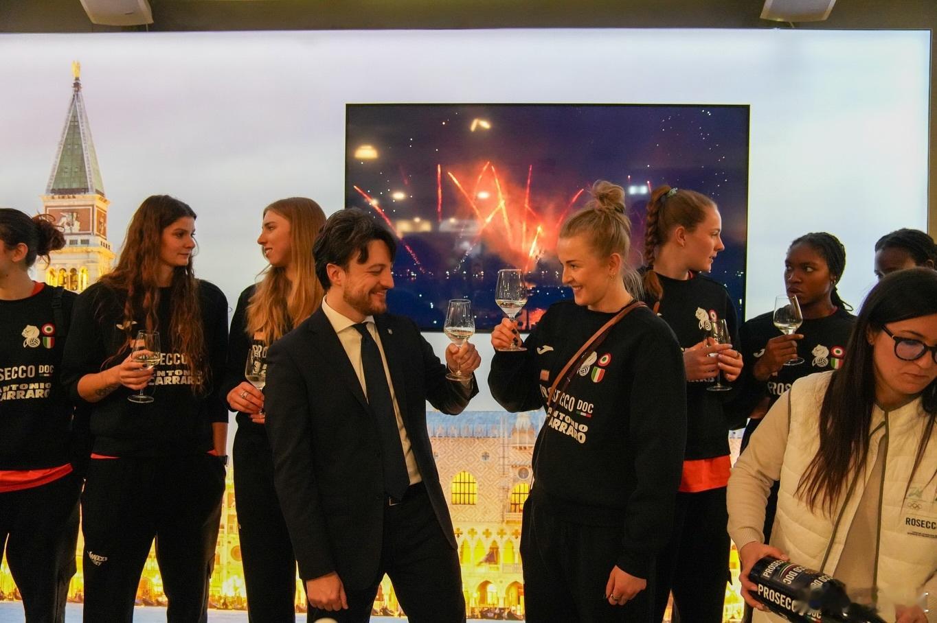 国际排坛动态冬奥会包括朱婷在内的科内利亚诺队本周到访了位于科尔蒂纳丹佩佐的“Casa Veneto”,这里也是本届冬奥会的驻地之一!🏔️科内利亚诺