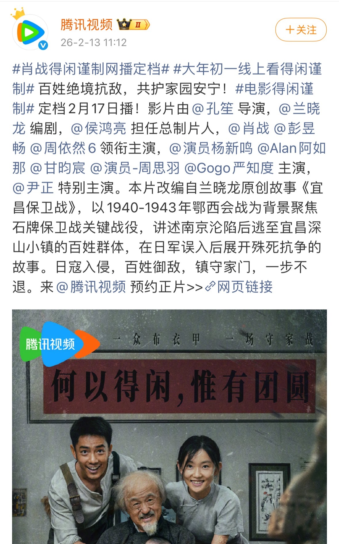 肖战《得闲谨制》大年初一上线流媒体了,可以在线上观看莫得闲了