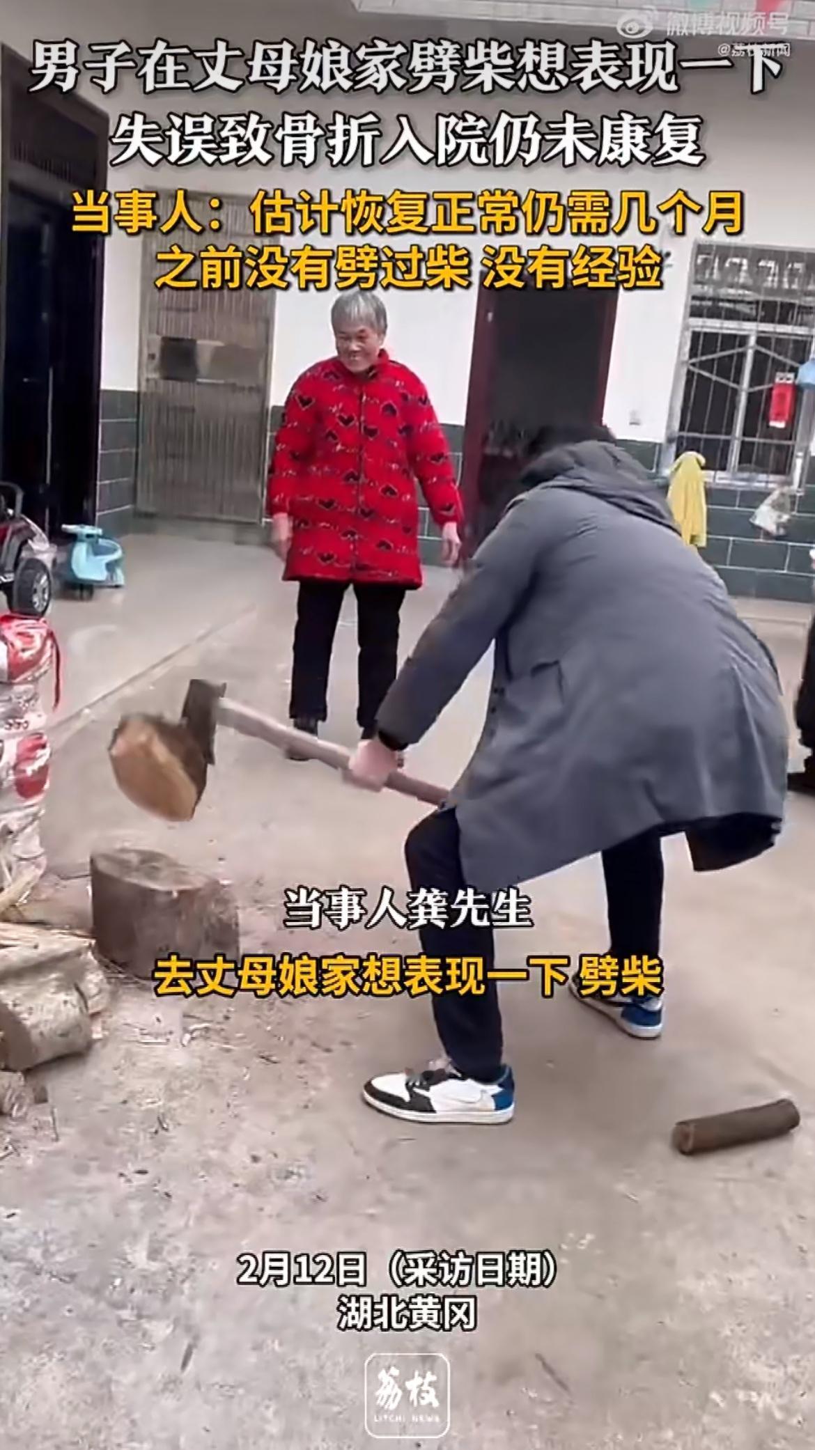 “玩砸了吧!”想在丈母娘面前露一手,结果用力过猛直接把自己送进了医院?湖北黄冈的龚先生万万没想到,人生第一次劈柴居然以骨折收场!没经验、木头湿、地还硬,这一斧头下去,柴没开骨头先裂了。 湖北黄冈龚先生去丈母娘家,看到家里有不少柴火,就想着露一手帮着把柴劈了,让丈母娘看看自己多能干。他之前也没劈过柴完全是个新手小白,拿起斧头就干上了。 他选的那根木材没干透,里面湿漉漉的。而且劈柴的地方选在了水泥地面上,水泥地面硬邦邦的和在土地上劈柴大不一样。再加上他劈柴的角度也不对,本来应该顺着木材的纹理,用合适的力气和角度砍下去,可他没掌握好,一斧头下去木材没劈开,斧头的反作用力却把他给弹了一下。 这一弹龚先生只觉得手腕和胳膊一阵剧痛,手里的斧头都拿不稳了。低头一看手腕已经肿了起来,疼得他直咧嘴。家里人一看这情况赶紧把他送到了医院。到了医院一检查,医生说他手腕骨折了,得打石膏固定。龚先生就这么打着石膏在医院里待了一段时间。 龚先生心里那个后悔啊。他本来是想好好表现给丈母娘留个好印象,结果却弄成这样,不仅自己遭罪还让家里人跟着担心。他说当时在医院的病床上,看着自己打着石膏的手,真是又好气又好笑。 过了些日子石膏拆了,可龚先生的手腕还没完全好。医生告诉他还得继续休养,预计还得数月才能恢复正常。现在龚先生出门都得小心翼翼的,日常也就只能开开车,或者少量地行走,稍微多动一下手腕就会疼。 这事传出去后,好多人觉得又好笑又同情。有人说他太实在,没劈过柴还硬要上,这下吃苦头了吧;也有人说他这份想表现的心是好的,就是方法不对缺乏经验。龚先生自己也说通过这事算是长记性了,以后再干自己不熟悉的事一定得先了解清楚,做好准备,不能这么莽撞了。 生活中像这样想表现却出意外的人还真不少。有的人想在朋友面前展示自己的厨艺,结果把厨房弄得乌烟瘴气差点引发火灾;有的人想在领导面前表现自己的能力,结果因为准备不充分把事情搞砸了。这些事都告诉我们,做任何事情都要量力而行,有把握了再去做,不然很容易弄巧成拙。 龚先生这次劈柴虽然让他吃了不少苦头,但也给大家提了个醒。希望他快点好起来,以后都能顺顺利利的。如果你觉得龚先生这事有意思,或者从他的经历里得到了启发,那就点赞转发一下,让更多的人看到。关注我,给你带来更多有趣又有意义的生活故事。 春节与智己从容出行 来源:荔枝新闻