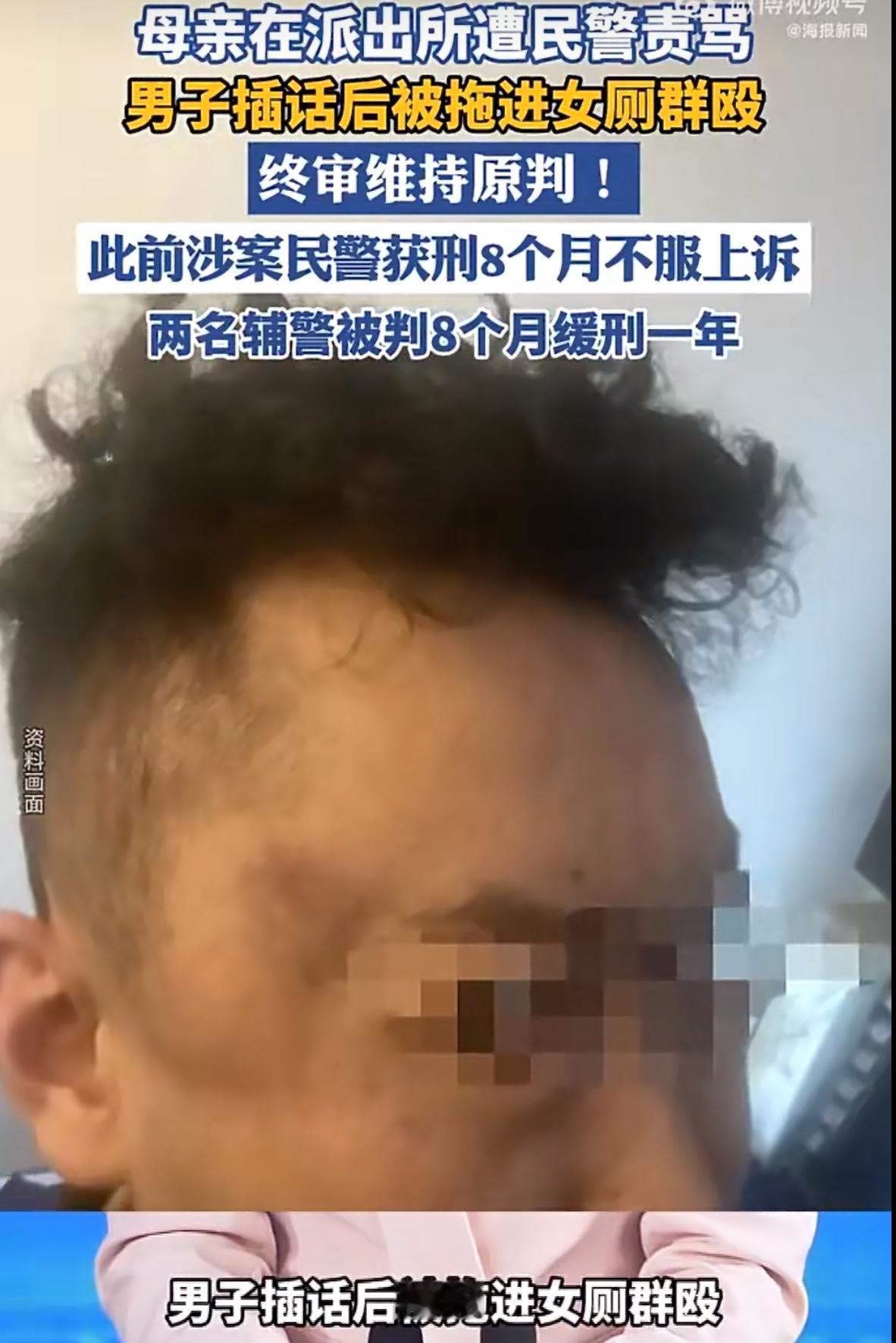 青海西宁发生了一起让人瞠目结舌的案件,民警把市民拖进女厕所群殴,最终法院判了涉事民警8个月实刑,这事儿在网上炸开了锅,时间得回到2022年8月29号早上,孙先生陪着脚伤刚好的母亲下楼做核酸?扫码时出了点异常,社区工作人员直接报了警,母子俩被带到彭家寨派出所后,民警开始询问情况,孙先生的母亲急着解释,结果被民警张某劈头盖脸一顿骂,孙先生看母亲被凶,赶紧说了句“妈,别说了”,就这五个字,彻底激怒了张某——他当场叫上两名辅警,把孙先生从询问室拖了出去。 接下来的一幕简直像电影里的暴力桥段,三人把孙先生拽到派出所一楼的女厕所里,张某和一名辅警先动手,对着孙先生拳打脚踢,另一名辅警后来也冲进去补了几脚,整个过程持续了好几分钟,直到孙先生被打得瘫在地上动弹不得,孙先生被送医后,诊断结果让人揪心:右侧肩胛骨骨折,轻伤二级,头部、面部多处挫伤,构成轻微伤,更气人的是,案发后涉事民警找孙先生居然想“私了”,说给10万块赔偿,内部处理打人者,孙先生一开始收了钱,结果发现对方根本没被处理,还否认打过人,这下孙先生不干了,他跑遍多个部门举报,还做了三次司法鉴定,硬是把证据链钉得死死的。 案件进入司法程序后,细节更触目惊心,法院审理查明,张某等三人虽然没提前商量,但现场配合默契,一个拽胳膊,一个抱腰,另一个专门踢踹要害部位,完全符合共同犯罪的特征,张某在上诉时还辩解“没有故意伤害的故意”,结果被二审法院直接驳回,监控虽然没拍到厕所里的画面,但孙先生的伤情、目击者证言、还有三人一致的供述,形成完整证据链,想甩锅?没门! 2025年11月,一审法院判了民警张某有期徒刑8个月,两名辅警同样判8个月,但缓刑一年,张某不服上诉,2026年2月,西宁市中级人民法院终审裁定维持原判。法官特别强调:执法者知法犯法,必须从重处罚,这案子最让人感慨的是孙先生的“较真”。如果当时他接受私了,可能这事儿就烂在肚子里了,但他选择用法律维权,哪怕耗时三年,也要讨个公道,而法院的判决也传递了一个明确信号不管穿不穿制服,违法就要付出代价,法律面前没有特权! 现在,张某已经在监狱里服刑,两名辅警也留下了犯罪记录,这起案件像一面镜子,照出了个别执法者的傲慢与暴力,也照出了普通公民维护权益的决心。说到底,警察的权力是人民给的,用来保护群众,不是用来欺负人的,这点,永远不该被忘记。厕所围殴 民警拖男子进女厕群殴获刑8月 事件来源:海报新闻
